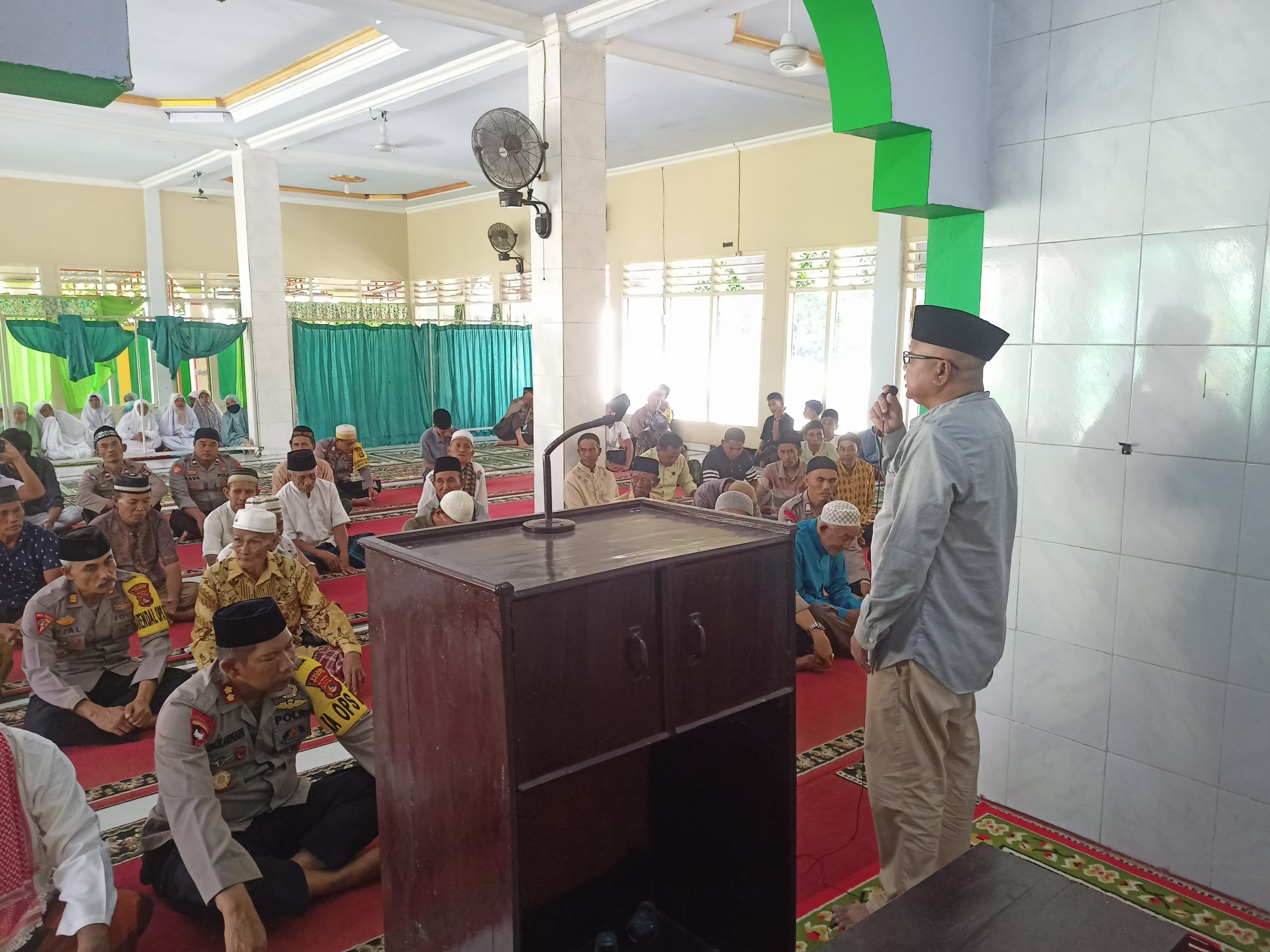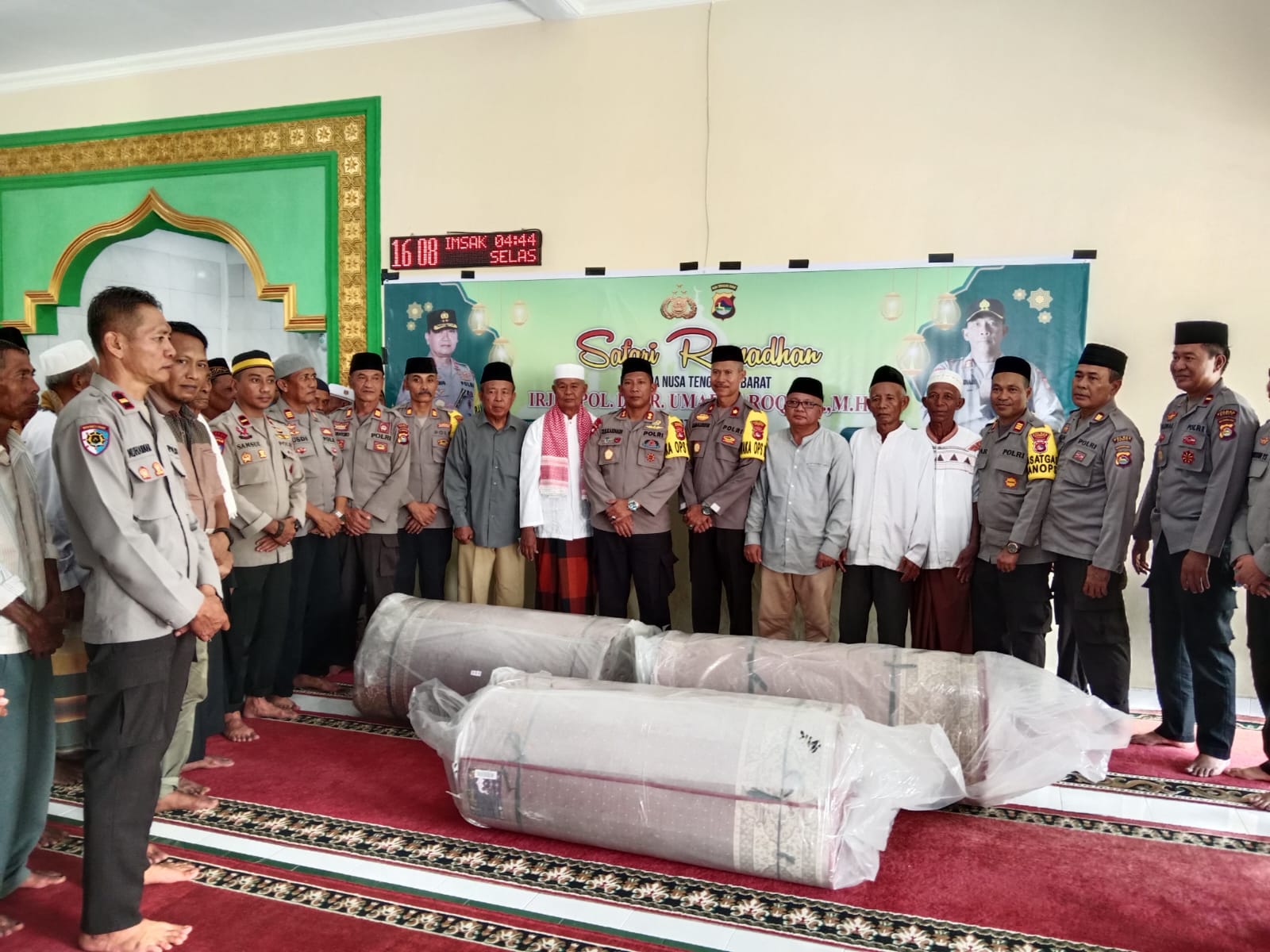 Selanjutnya sekira pukul 16.10 wita melaksanakan kegiatan penyerahan bantuan Berupa 3 Roll Karpet Masjid yang di serahkan oleh Kapolres Dompu AKBP ZULKARNAIN, S.I.K. dan di Terima oleh pengurus masjid Baiturrahim Kelurahan Simpasai Kecamatan Woja Kabupaten Dompu.