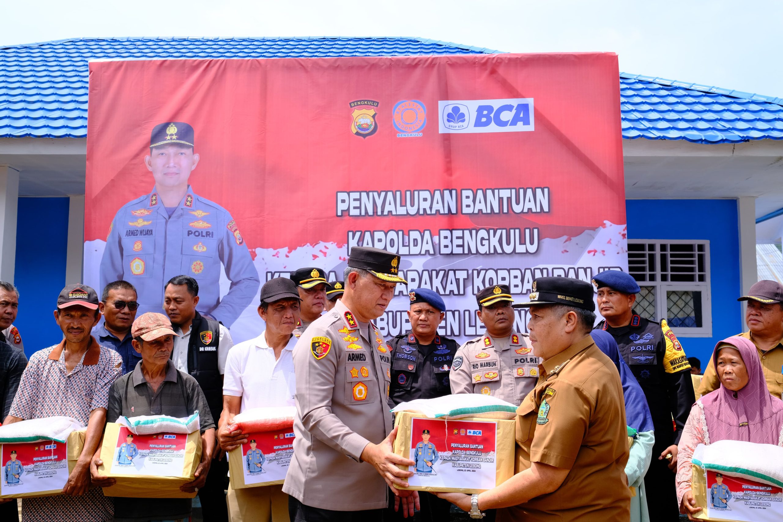 Bantuan yang dikirim kemarin 3 truk yakni 1 ton beras,500 dus mie instan,1000 dus air mineral dan uang tunai 25 juta hari ini kita bagikan.semogah ini dapat membantu meringankan beban masyarakat Lebong. Ungkap kapolda