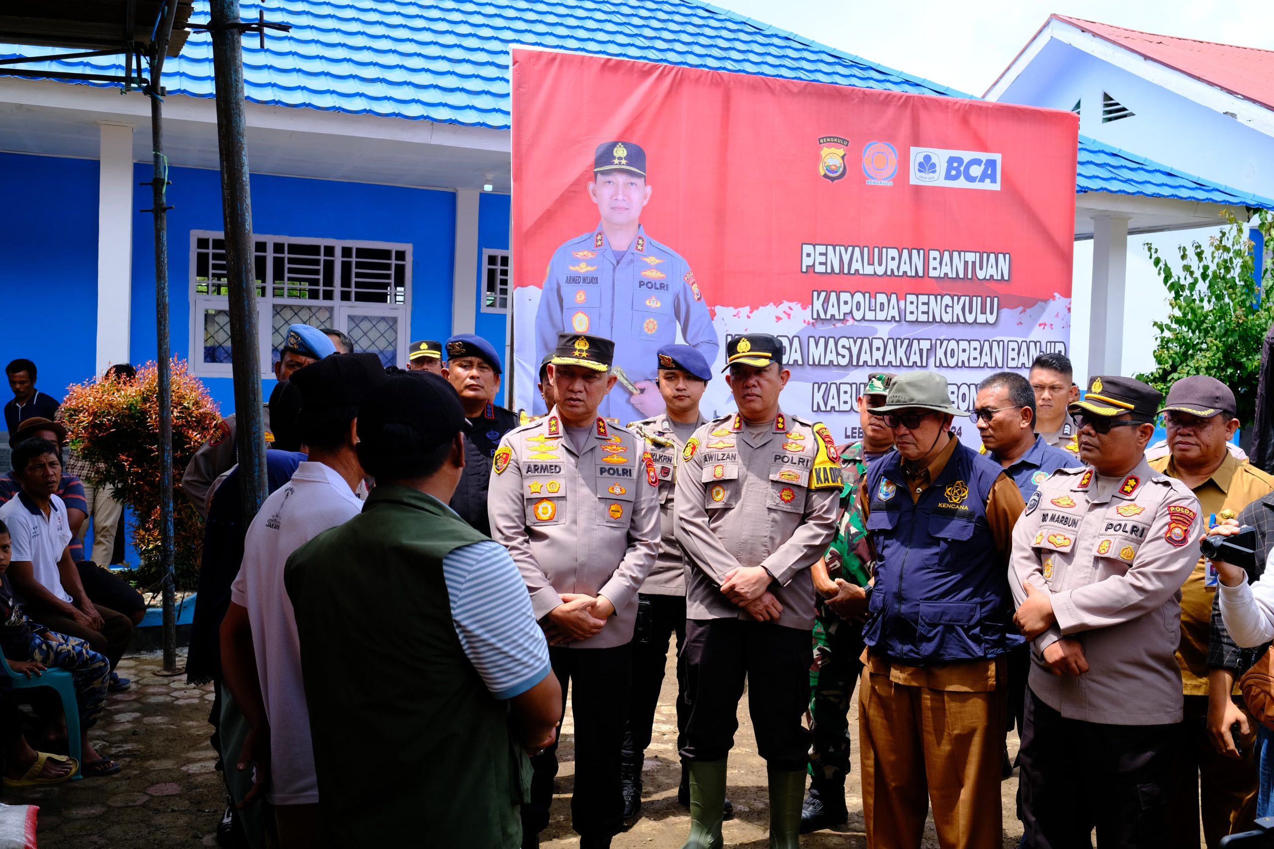 Kapolda irjen Pol Drs.H.Armed Wijaya,M.H tatap muka secara langsung menemui masyarakat yang terdampak banjir berlokalisi dihalaman SMPN 17 lebong,kapolda juga didampingi beberapa pejabat utama memberikan bantuan secara simbolis kepada warga.