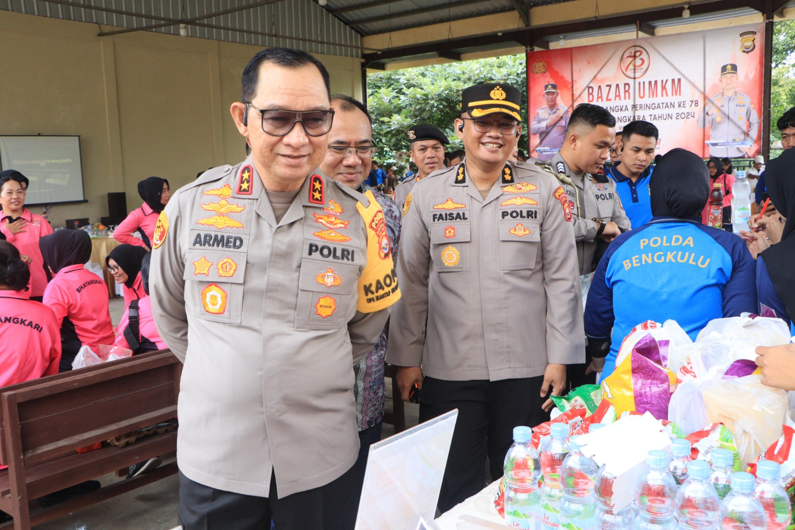 Kompas86.com Bengkulu-Kapolda Irjen Pol Drs.H Armed Wijaya M.H melakukan peninjauan langsung terhadap bazar usaha Mikro Kecil Dan Menengah (UMKM) di lapangan anton soedjarwo rabu (28/6/2024).