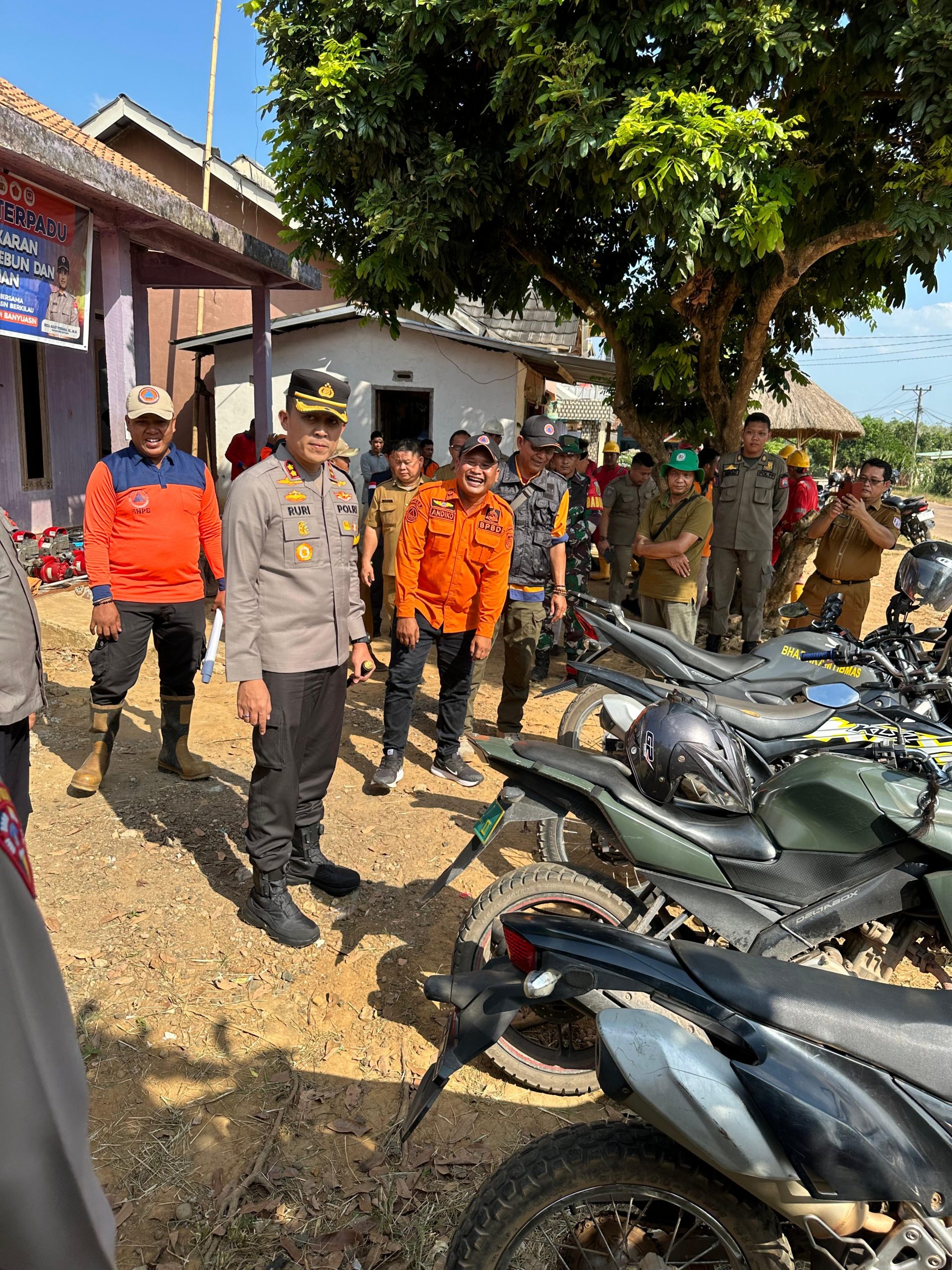 PT. AAS (Andalan Alam Sumatera), Tim Peduli Api Perusahaan di Kecamatan Suak Tapeh, Masyarakat Peduli Api di Kecamatan Suak Tapeh, Babinsa Koramil Betung Sertu Fahlevi, Bhabinkamtibmas Bripka Lukman Saputra, dan Bhabinkamtibmas Briptu David Karnando.