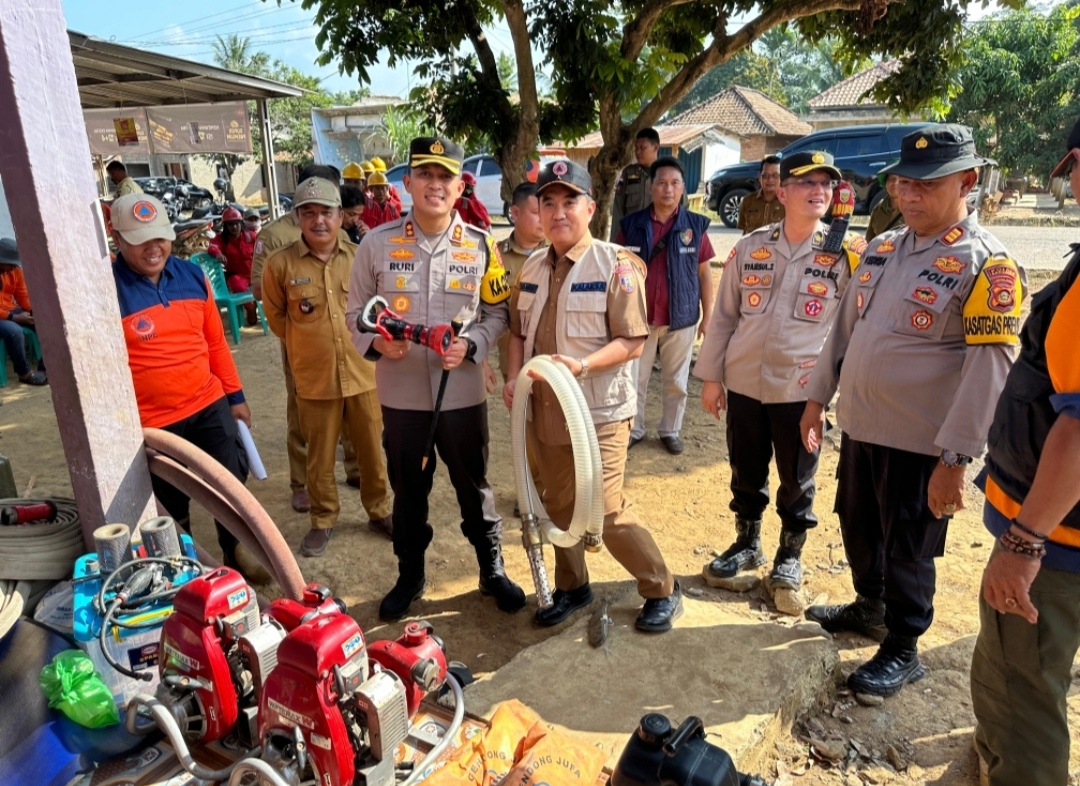 BANYUASIN – Kapolres Banyuasin AKBP Ruri Prastowo SH SIK MIK* , melakukan pengecekan peralatan perlengkapan kesiapan penanggulangan karhutla di Posko Terpadu 02, yang berlokasi di Desa Tanjung Laut Kecamatan Suak Tapeh Kabupaten Banyuaisn, Selasa (23/7).