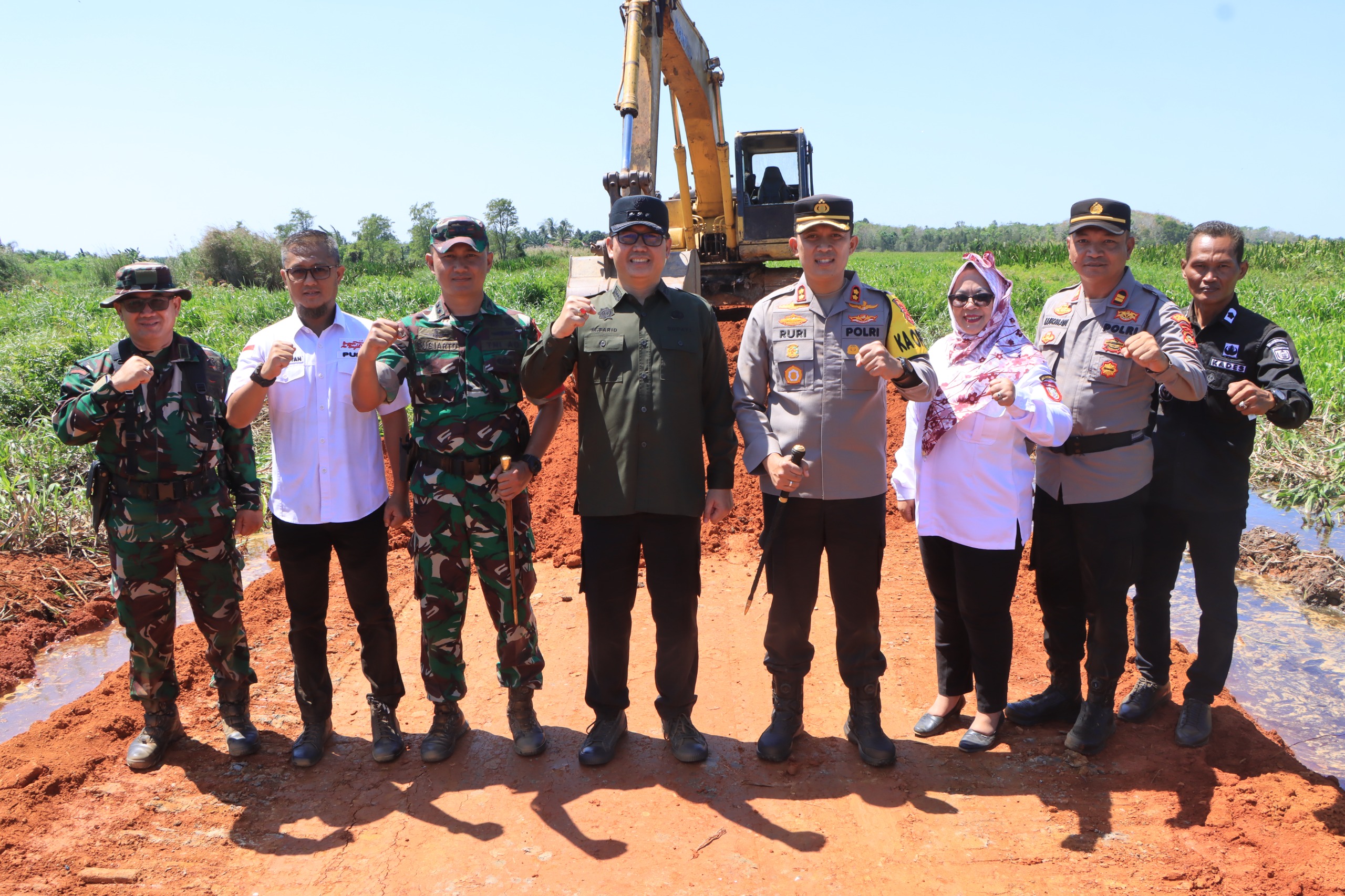 Dalam kehadirannya, Kapolres Banyuasin AKBP Ruri Prastowo SH SIK MIK memberikan dukungan penuh terhadap pelaksanaan kegiatan TMMD yang bertujuan untuk mempercepat pembangunan di wilayah setempat.