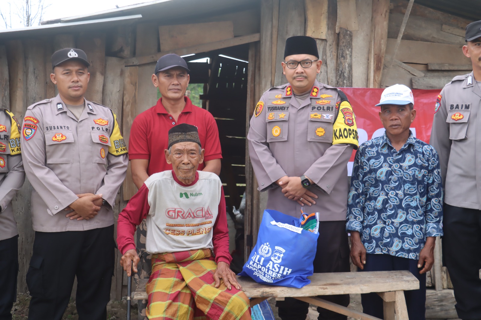 KOMPAS86.COM, Lampung Selatan – Kapolres Lampung Selatan, AKBP Yusriandi Yusrin, bersama jajaran Polsek Penengahan melakukan kunjungan kemanusiaan ke kediaman Kakek Sokim (93), seorang lansia sebatangkara yang tinggal di rumah tak layak huni di Dusun 10 Sumberjaya, Desa Karangsari, Kecamatan Ketapang, Lampung Selatan. Sabtu, (15/03/2025).