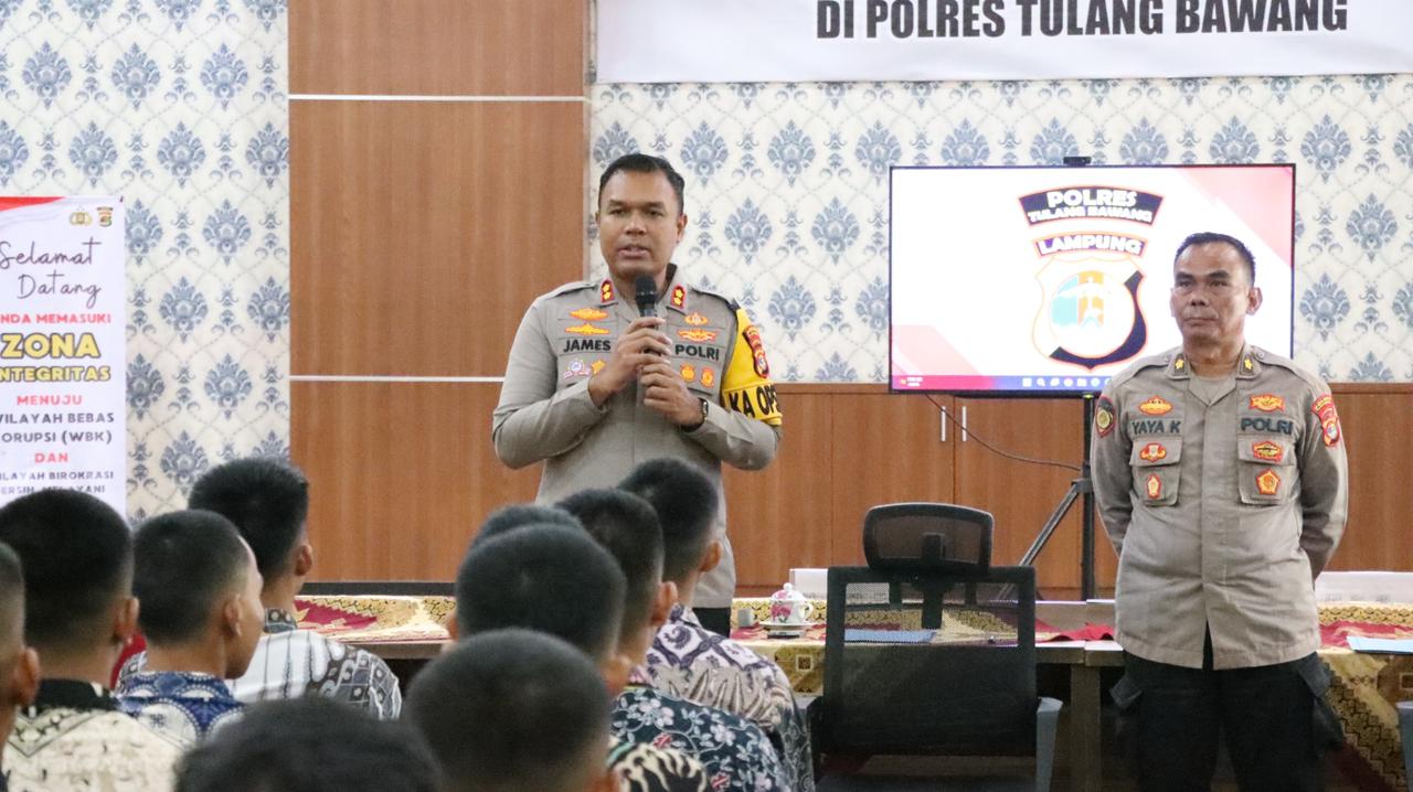 Tulang bawang,Kompas86.Com Kapolres Tulang Bawang, Polda Lampung, AKBP James H Hutajulu, SIK, SH, MH, MIK, mengimbau kepada para calon siswa (casis) dan orang tuanya, apabila menemukan kecurangan pada proses seleksi penerimaan Polri terpadu TA 2024 untuk segera melapor ke Propam.