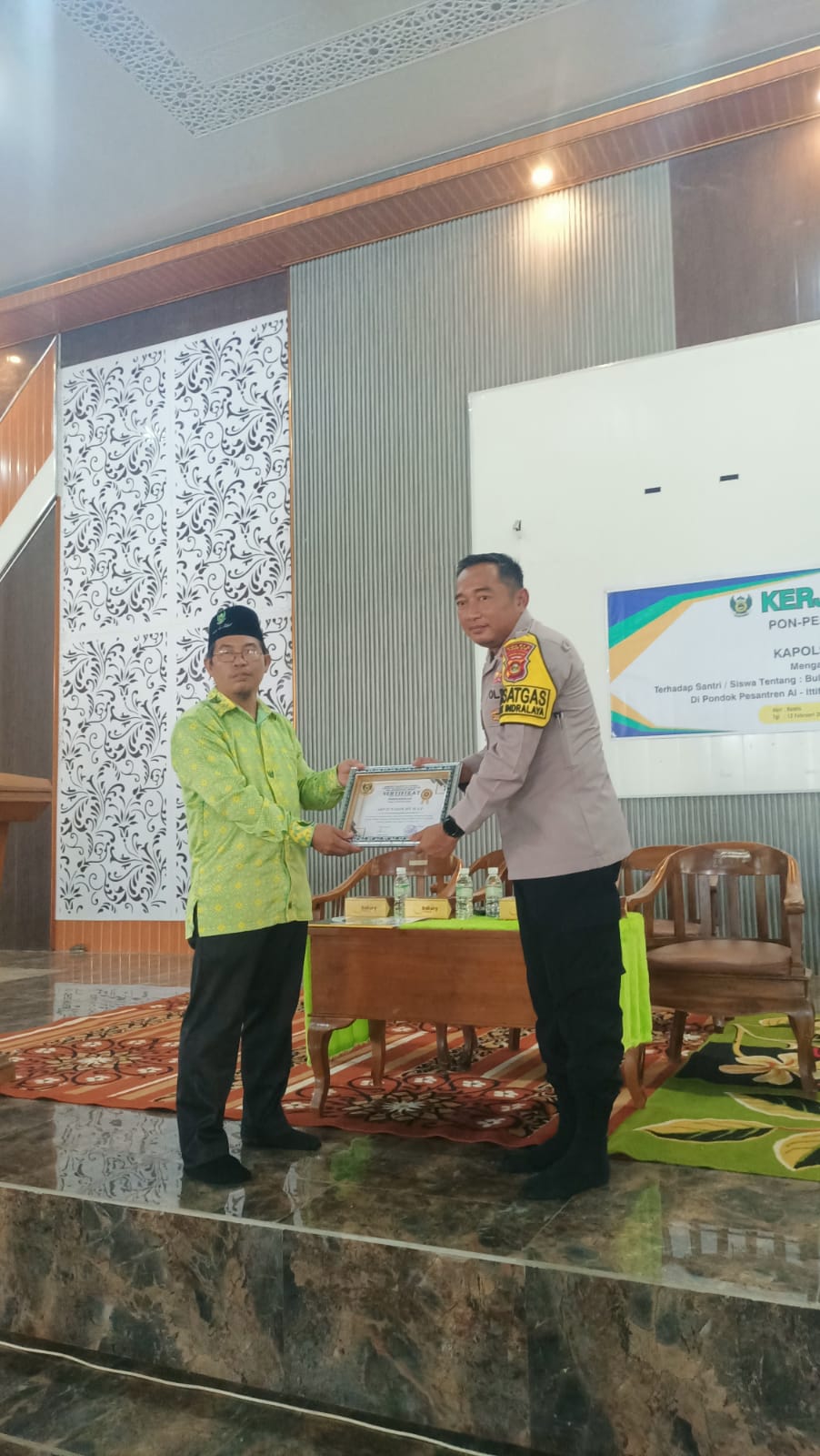 Kapolsek Indralaya hadir didampingi oleh Kanit Intelkam Polsek Indralaya Aiptu Syahrul beserta beberapa anggota. Kedatangan mereka disambut oleh pengasuh Ponpes Al-Ittifaqiah serta para ustaz dan santri yang antusias mengikuti penyuluhan.