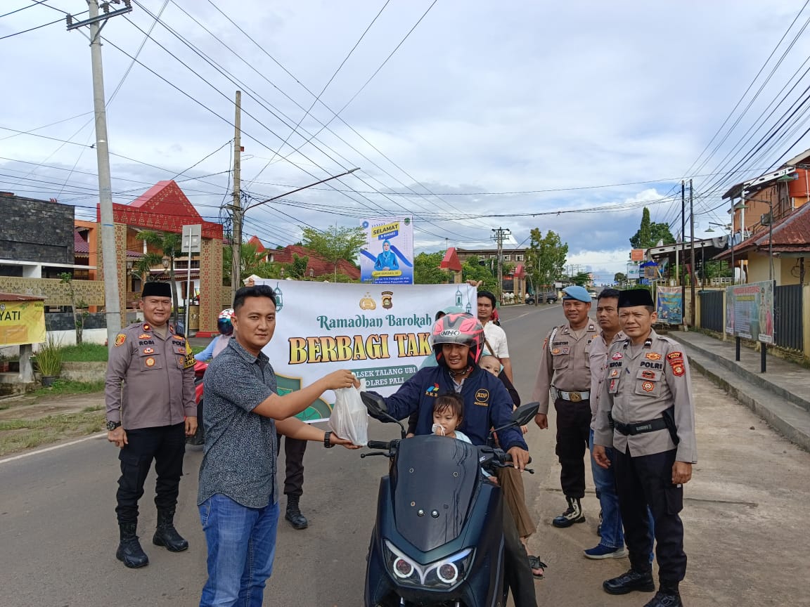 Dalam suasana penuh kehangatan, para personel Polsek Talang Ubi membagikan takjil kepada pengendara yang melintas.
