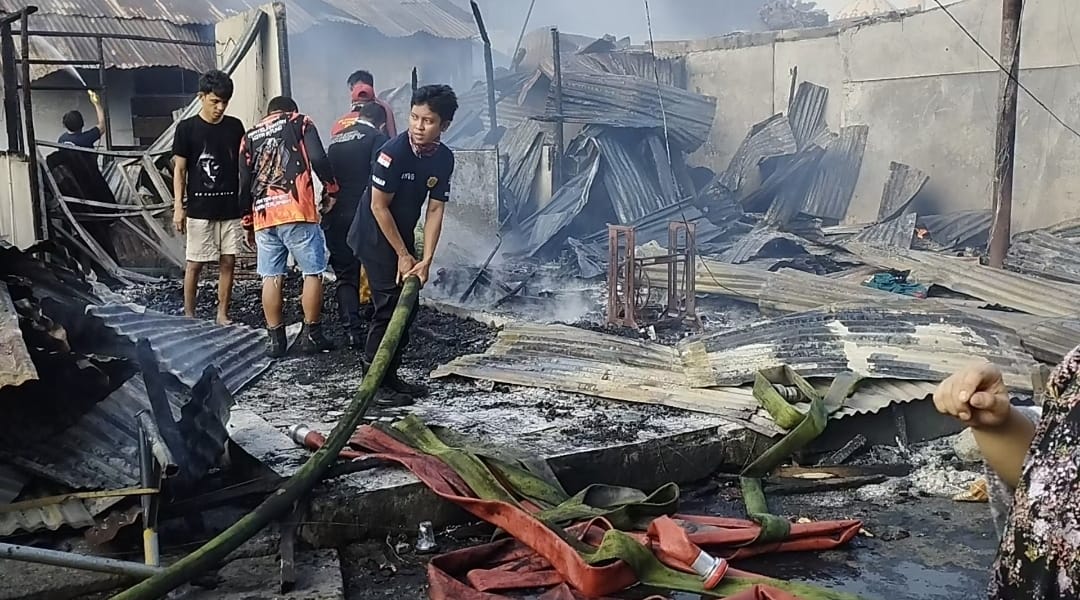 Sekitar 30 lapak dan kios di Pasar Girian menjadi korban dilahap si jago merah pada Rabu (22/05/2024)