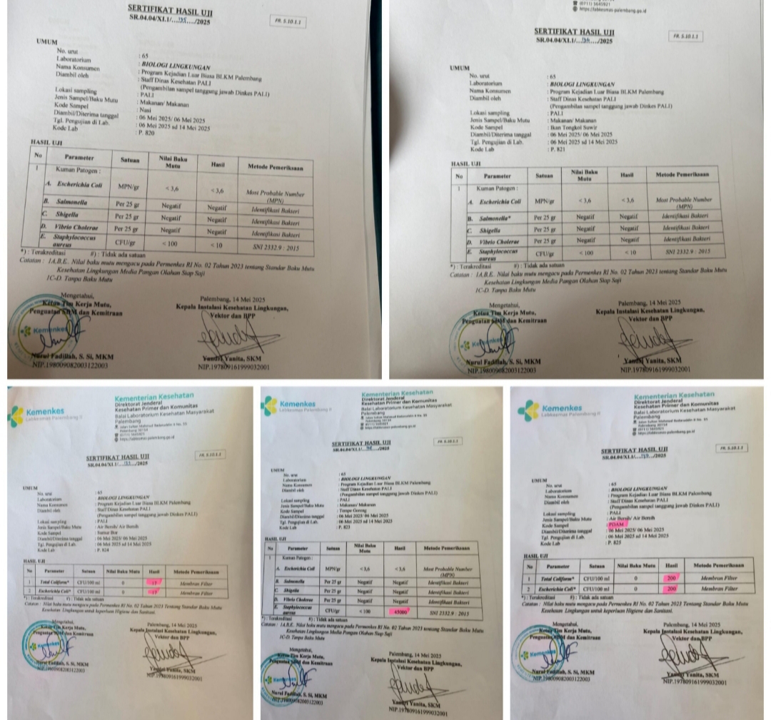 Kepala Dinas Kesehatan PALI, H. Andre Fajar Wijaya, menjelaskan bahwa pihaknya berperan sebagai perantara dalam menyampaikan hasil uji laboratorium yang dilakukan oleh Balai Besar Laboratorium Kesehatan Masyarakat (BBLKM) Palembang lembaga resmi yang memiliki kewenangan dan fasilitas memadai untuk pengujian ilmiah.