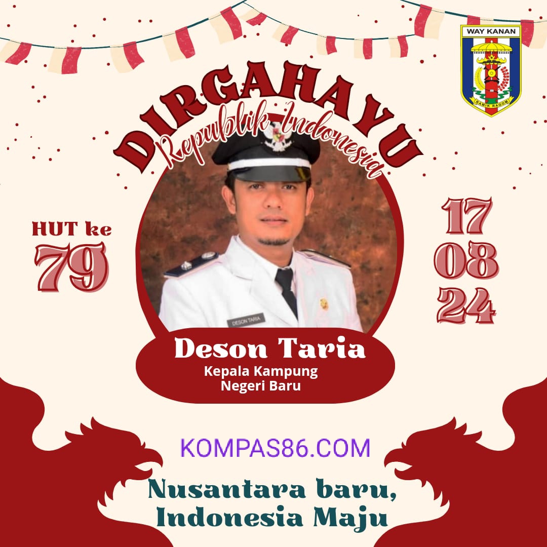 Kepala Kampung Negeri Baru Kecamatan Umpu Semenguk mengucapkan HUT RI KE-79.