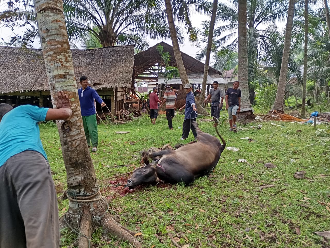 Ketua BUMG Desa Mantang Pineung, Fahri, Berbagi Daging Lembu untuk Masyarakat