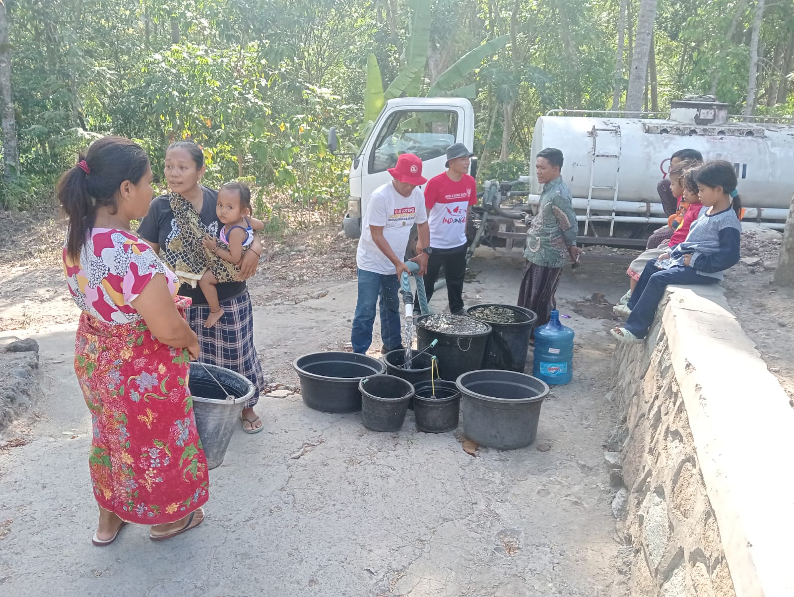 “Masyarakat kekurangan air bersih, kekeringan. Maka kami bantu memberikan air bersih untuk masyarakat yang kekeringan”. Ungkapnya.