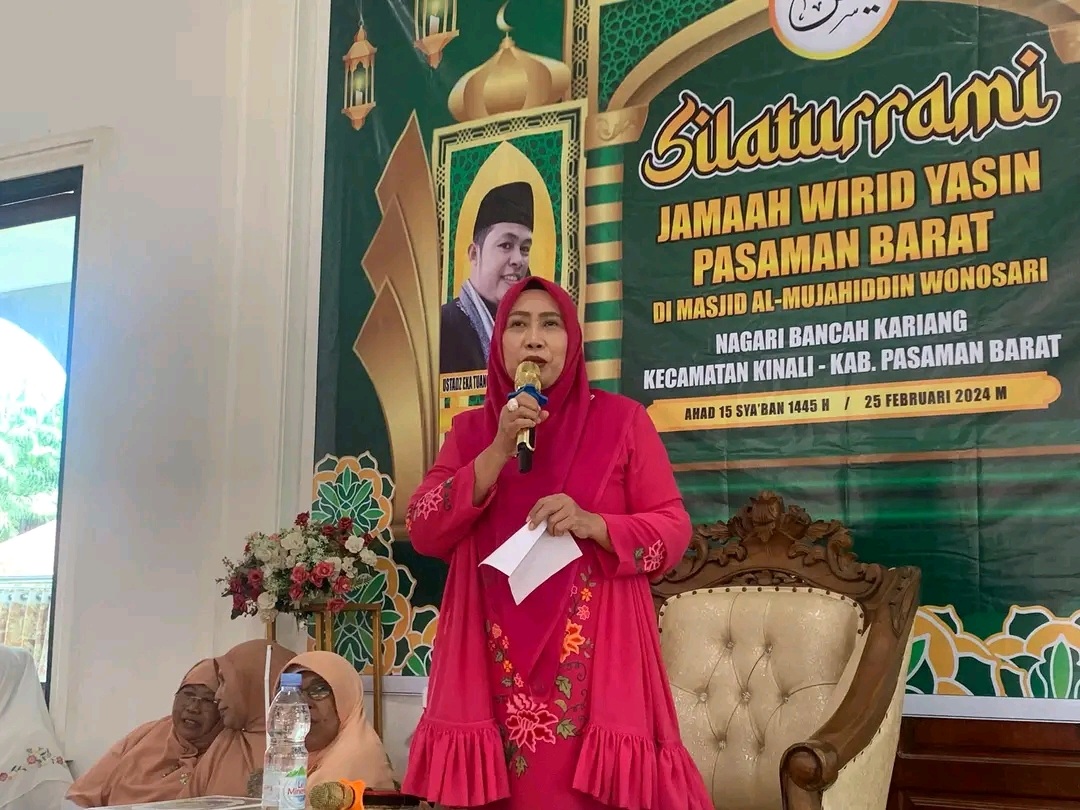Pasbar, Sumbar, kompas86.com. Ketua Gabungan Organisasi Wanita (GOW) Pasbar Ny. Fitri Risnawanto hadiri pertemuan dan silaturahmi Jamaah Wirid Yasin se-Kabupaten Pasaman Barat (Pasbar) yang dipusatkan di Masjid Al-Mujahiddin Jorong Wonosari, Nagari Bancah Kariang, Kecamatan Kinali, pada Minggu (25/2).