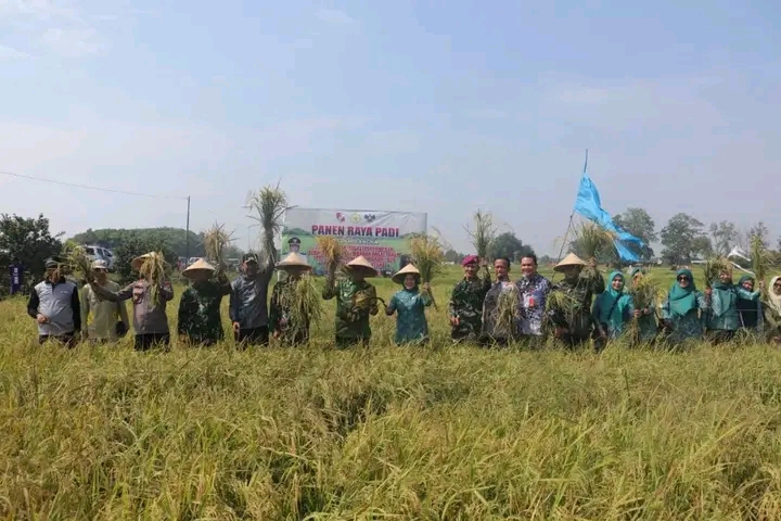 Lampung Utara,Kompas86.Com Wakili Dandim, Kasdim 0412/LU Mayor Cpm Aris Setia Hadi bersama Pj. Bupati Lampura Drs. Aswarodi dan Jajaran terkait, melaksanakan Panen Raya Padi di lokasi Irigasi Perpompaan Desa Wonomerto Kec. Kotabumi Utara Kab. Lampung Utara. Jum’at, 13/09/2024 Pukul 09.00 Wib.