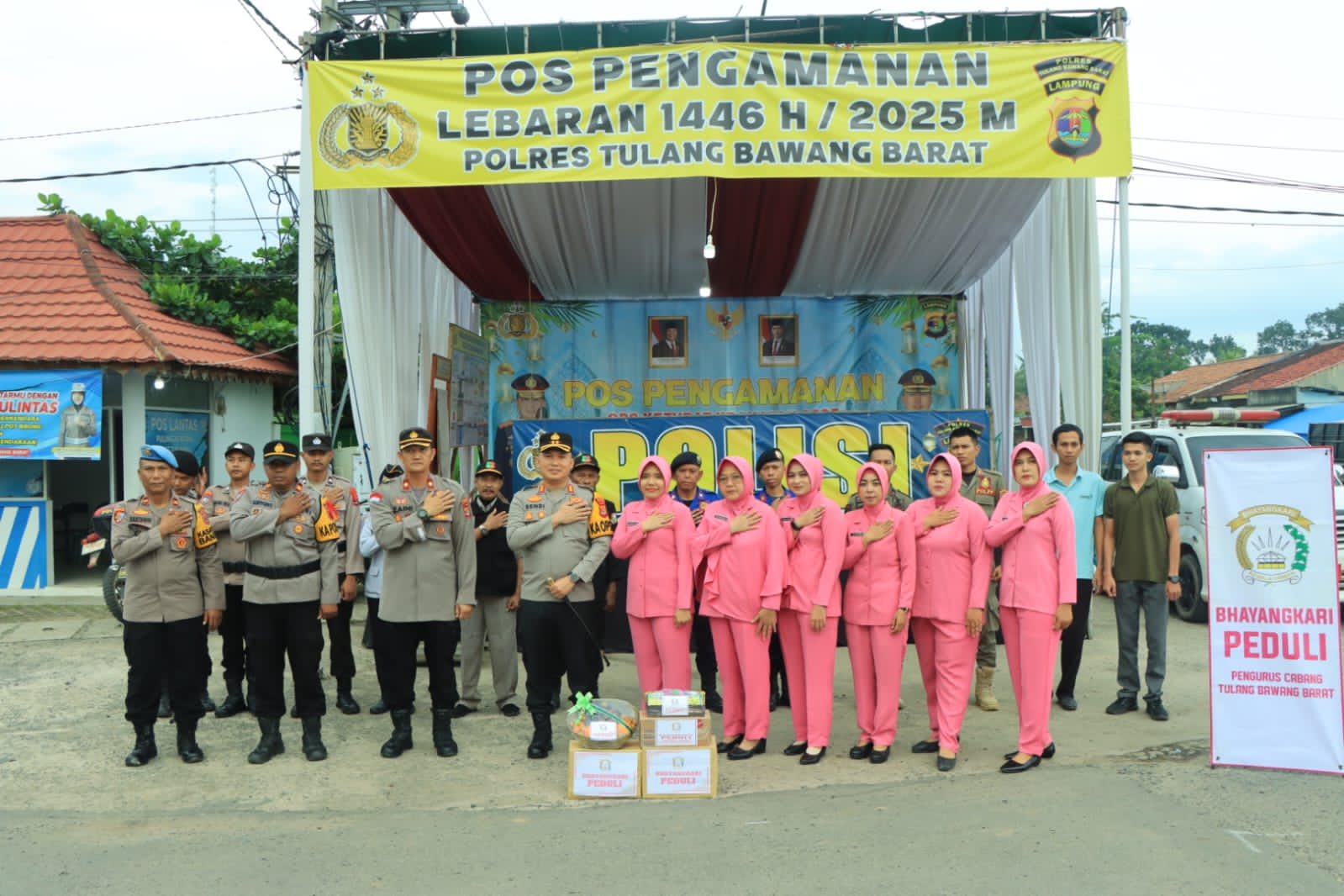 Tulang Bawang Barat,Kompas86.Com Sebagai wujud kepedulian dan dukungan terhadap seluruh personel gabungan yang terlibat dalam Ops Ketupat Krakatau 2025, Kapolres Tubaba, Polda Lampung AKBP Sendi Antoni.S.I.K, M.I.K, bersama Ibu Ketua Bhayangkari Cabang Tubaba Ny. Nina Sendi Antoni, didampingi para PJU dan pengurus Bhayangkari melakukan kunjungan ke Pospam Islamic center dan Pospam Pulung Kencana, Minggu (30/3/25) Sore