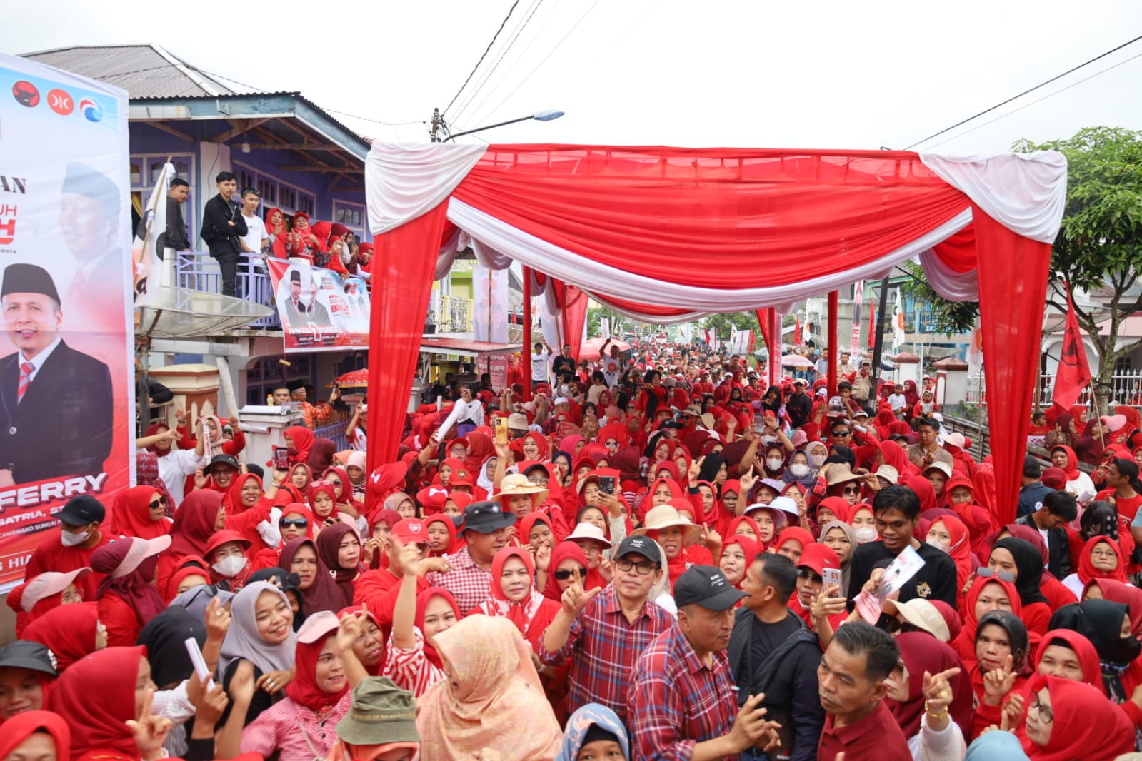 SUNGAI PENUH, Kompas86.com – Kampanye dan blusukan Pasangan Ahmadi Zubir-Ferry Satria (AZ-FER) nomor urut 2, di tiga desa, kecamatan Tanah kampung, Minggu (13/10). Yakni, desa Baru debai, desa koto Padang dan di pusatkan di desa Pendung Hiang, di banjiri ribuan massa, .