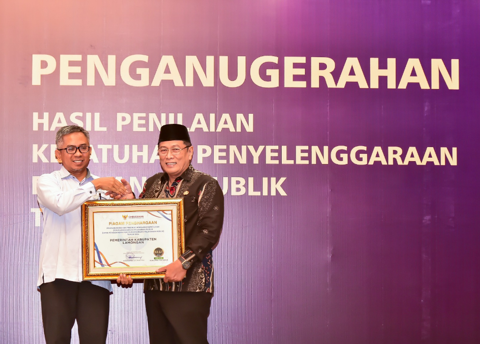 Pemerintah Kabupaten Lamongan pun dianugerahi penghargaan kepatuhan penyelenggaraan pelayanan publik tahun 2024 dari Ombudsman RI.