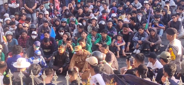 Tanpa podium atau mikrofon resmi, aspirasi rakyat disampaikan melalui toa sederhana. Meski berada sangat dekat dengan asap pekat akibat pembakaran ban, para pemimpin mendengarkan dengan penuh perhatian.