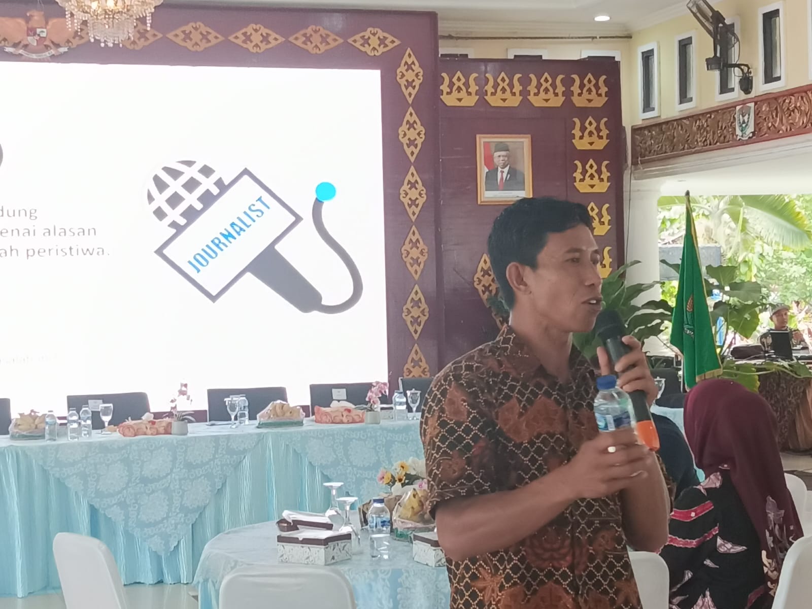 Muara Enim,SUMSEL,Kompas86.com// Bertempat di Balai Agung Serasan Sekundang (BASS) Rumah Dinas Bupati Muara Enim, Hafizul Alhakam yang merupakan Ketua Serikat Media Siber Indonesia (SMSI) Kabupaten Muara Enim, dalam hal ini sebagai nara sumber, memaparkan materi 5W1H pada pelatihan wartawan/ wartawati yang di prakarsai oleh Media Independen Online (MIO) Indonesia kabupaten Muara Enim, Sabtu (9/03/2024).