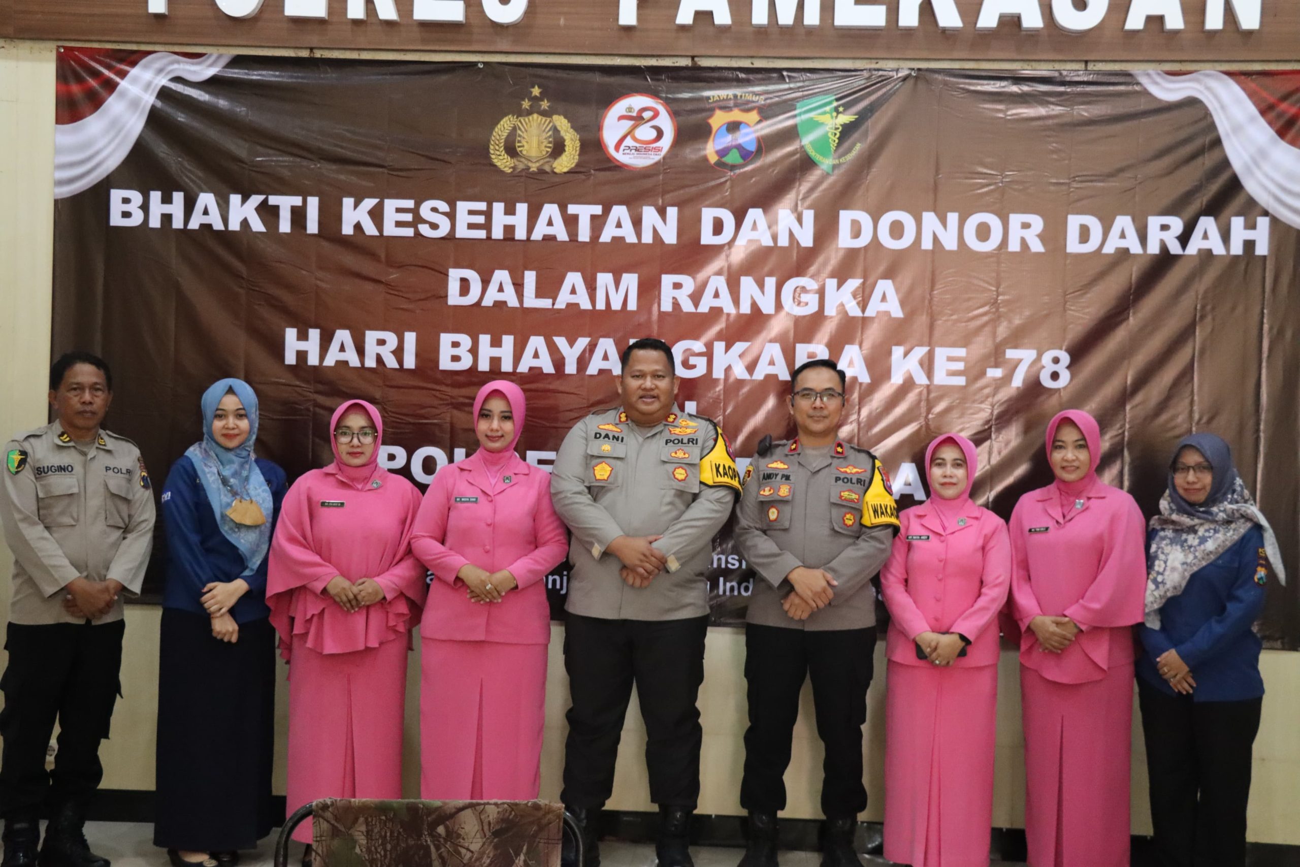 Pada kesempatan tersebut, Kapolres Pamekasan didampingi Ibu Ketua Bhayangkari Cabang Pamekasan beserta beberapa PJU Polres Pamekasan memberikan semangat kepada personil yang melaksankan donor darah dan peserta khitanan massal serta memberikan bingkisan simbolis kepada anak-anak yang telah menjalani sunat.
