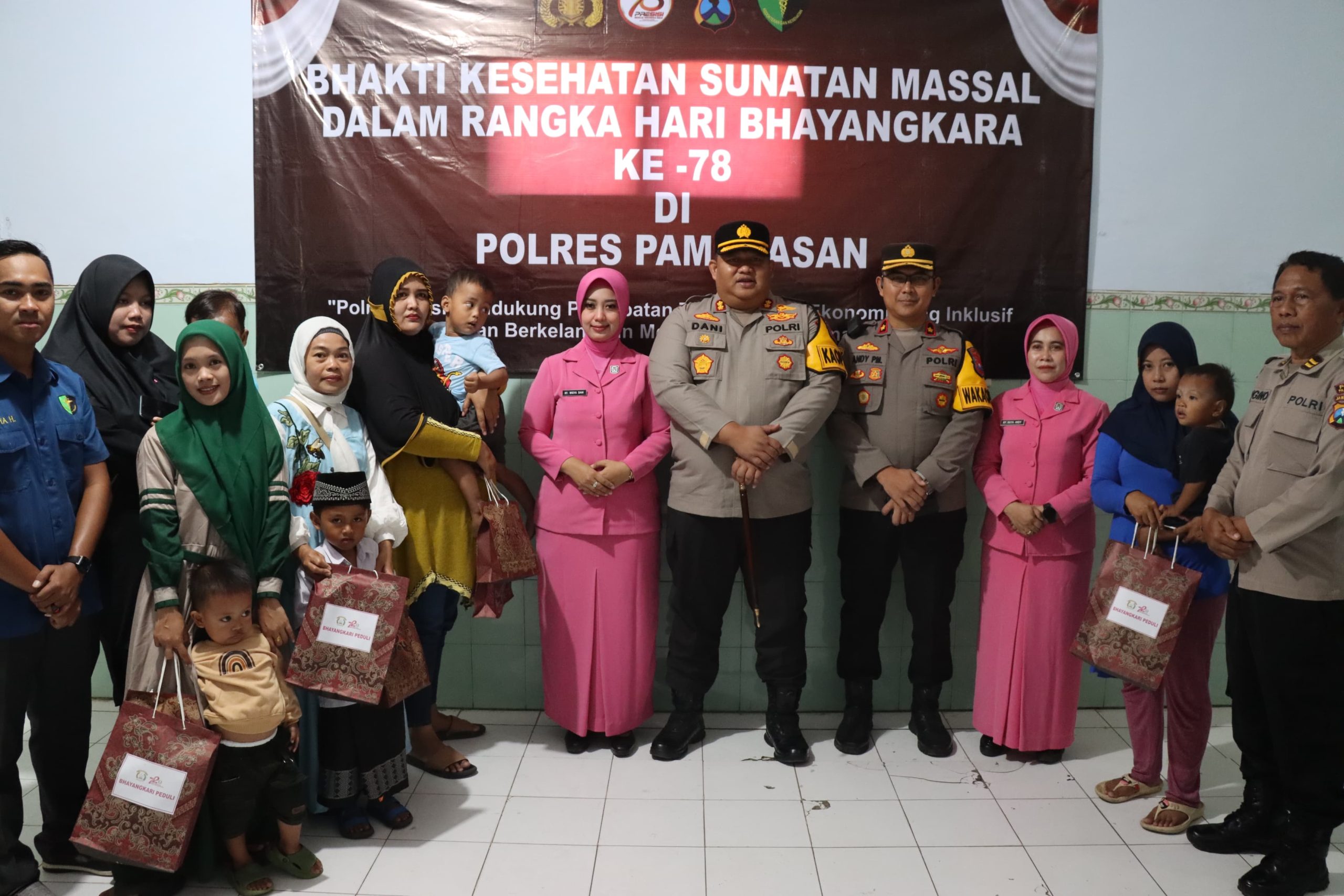 Kapolres Pamekasan AKBP Jazuli Dani Iriawan menyampaikan, bahwa kegiatan khitanan massal gratis ini merupakan salah satu program Polri dalam menyambut Hari Bhayangkara ke-78, dengan tujuan memberikan pengabdian dan pelayanan kepada masyarakat.