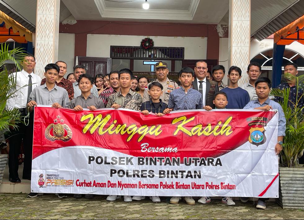 Minggu Kasih Polsek Bintan Utara tersebut dipimpin oleh Ipda R Edy Suratman Panit Binmas Polsek Bintan Utara yang dihadiri oleh pendeta Gereja dan sejumlah jemaat Gereja tersebut