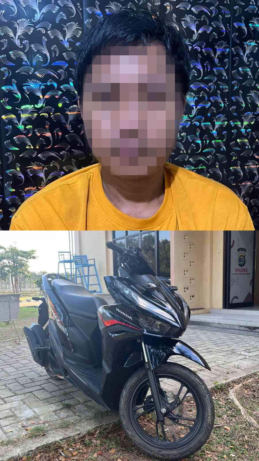 “Pelaku inisial AR (35) Warga Kampung Tohou Kec. Menggala Kab. Tulang Bawang diciduk Polisi saat melakukan COD atau transaksi jual-beli Pada hari Jumat tanggal 09 Mei 2025 di Gunung Batin Kab. Lampung Tengah, Dari tangan Pelaku turut diamankan 1 unit sepeda motor Merek Honda Vario berwarna Hitam hasil curian.