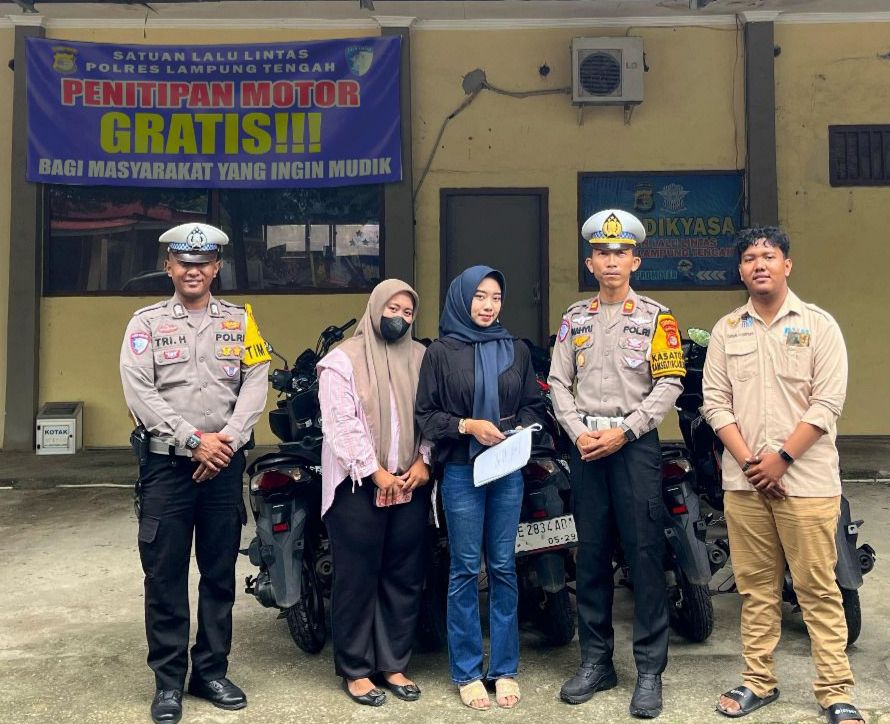 “Kami, Polres Lampung Tengah dan jajaran menyediakan fasilitas penitipan kendaraan untuk masyarakat yang akan mudik secara gratis,” ujarnya.
