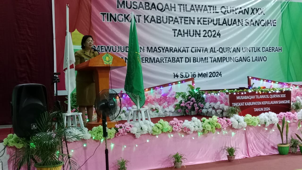 “Musabaqah Tilawatil Quran (MTQ) merupakan kegiatan yang telah mentradisi dan melekat dalam kultur masyarakat dan bangsa kita. Kehadiran MTQ senantiasa memiliki daya tarik dan ruang tersendiri dalam kehidupan masyarakat, mengingat even keagamaan ini selain menjadi media dakwah dan syair keagamaan yang efektif, juga secara nyata telah terbukti mampu menjadi daya dorong yang kuat dalam memacu percepatan pembangunan di daerah, lantunan kalam ilahi yang menggema selama pelaksanaan MTQ diyakini mampu menciptakan nuansa religius dan menghadirkan suasana yang memberi kesejukan batin bagi masyarakat. Disamping itu, kegiatan MTQ dapat menjadi forum silahturahmi yang mengandung nilai – nilai positif dalam memperkuat rasa persaudaraan dan ikatan kebersamaan lintas etnis dan agama sebagai sesama warga masyarakat kabupaten kepulauan Sangihe.