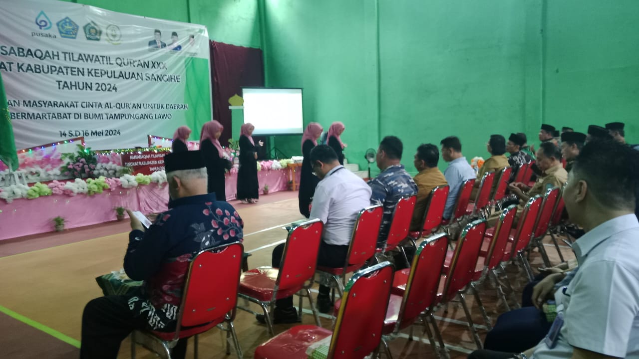 Bertempat di Aula kantor kementerian agama kabupaten kepulauan sangihe guna mewujudkan masyarakat cinta Al Quran untuk daerah yang bermartabat di tanah Tampungann Lawo pada hari selasa (14/05/2024) Pj Bupati yang diwakili oleh Asisten Admistrasi umum sekretariat Daerah kabupaten kepulauan sangihe Vebe. A.K. Bawole. S. sos Membuka secara resmi Musabaqah Tilawatil Quran (MTQ) Ke XXX Tahun 2024.