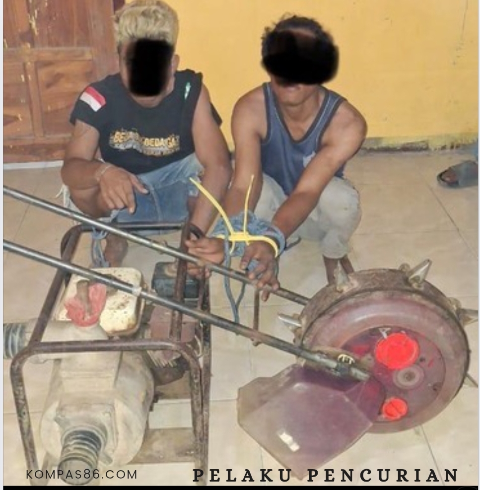 Kejadian tersebut terjadi sekira pukul 23.00 WITA di kediaman korban, seorang perempuan bernama FH (35), yang beralamat di RT/RW 005/005 Dusun Lapangan Desa Bara. Saat itu, para pelaku mencuri tiga unit mesin pertanian milik korban yang disimpan di halaman rumah, tepatnya di dekat mobil pickup, antara lain.