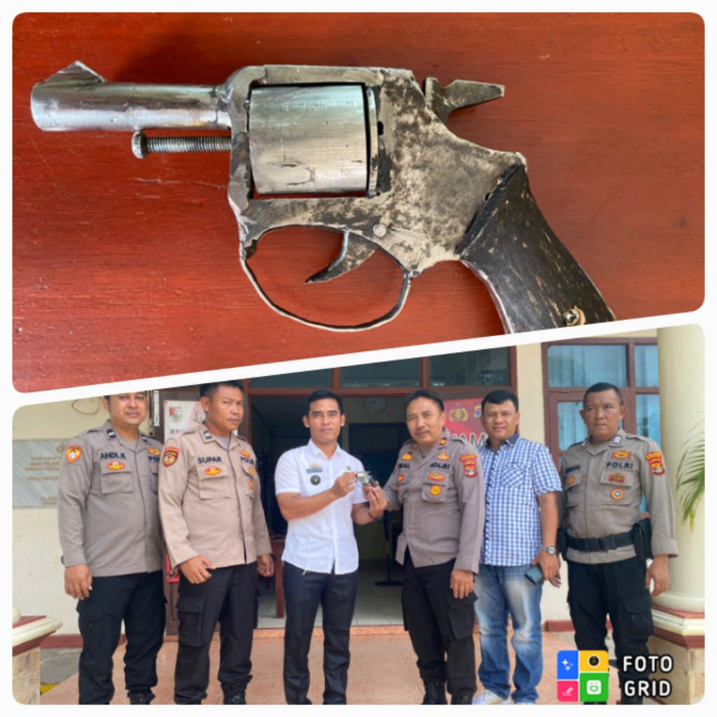“Pada Rabu, 15 Mei 2024 Sekira Pukul 09.00 Wib, Polsek Lambu Kibang Polres Tulang Bawang Barat mendapat penyerahan 1 Pucuk (senpi rakitan) Senjata Api Laras Pendek Jenis Pistol, Dari Kepalo Tiyuh Mekar sari jaya kec Lambu kibang Tulang Bawang Barat Bpk Alfredo isnovandi S.Pd.,”terang Kapolsek Lambu Kibang Iptu Amaluddin, S.Pd.