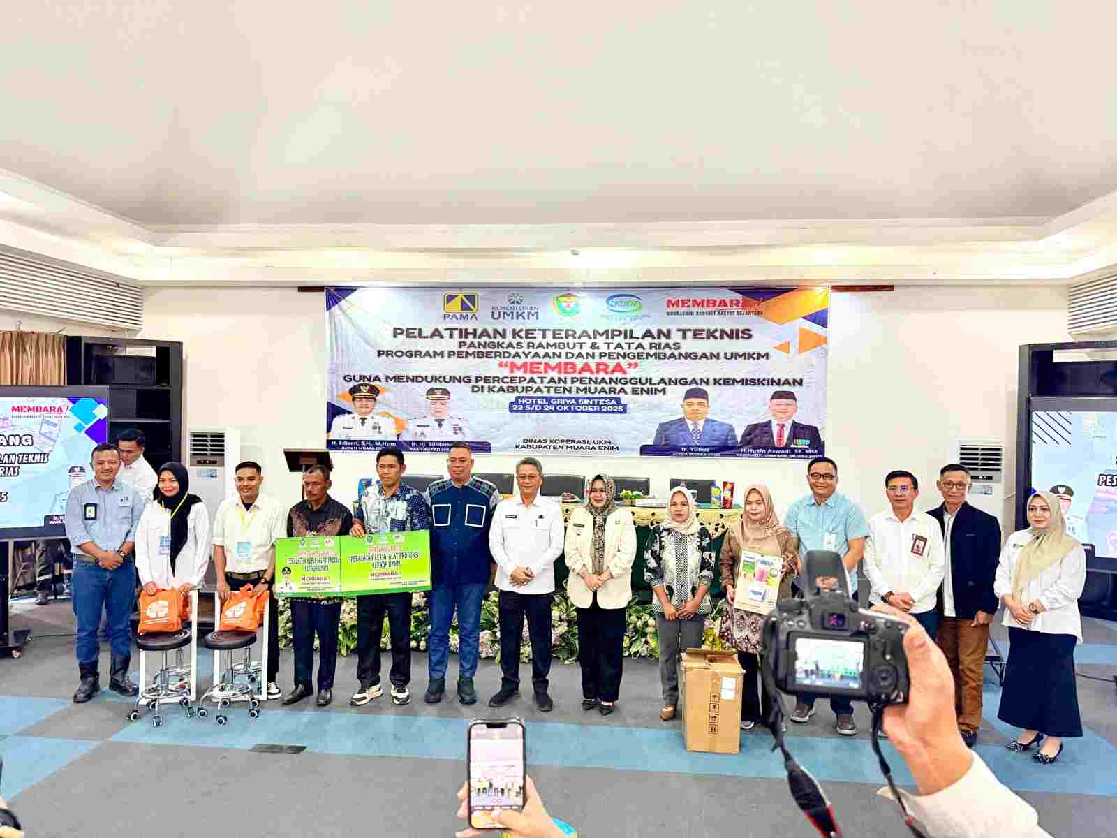 Muara Enim, Sumsel, kompas86.com// – PT Pamapersada Nusantara (PAMA) bekerja sama dengan Dinas Koperasi, Usaha Kecil dan Menengah Kabupaten Muara Enim menyelenggarakan kegiatan Pelatihan Mencukur dan Tata Rias bagi pemuda angkatan kerja di wilayah Muara Enim. Kegiatan ini dilaksanakan di Hotel Griya Sintesa Muara Enim dan diikuti oleh 70 peserta, terdiri dari 35 peserta pelatihan mencukur dan 35 peserta pelatihan tata rias, Rabu (22/10/25).