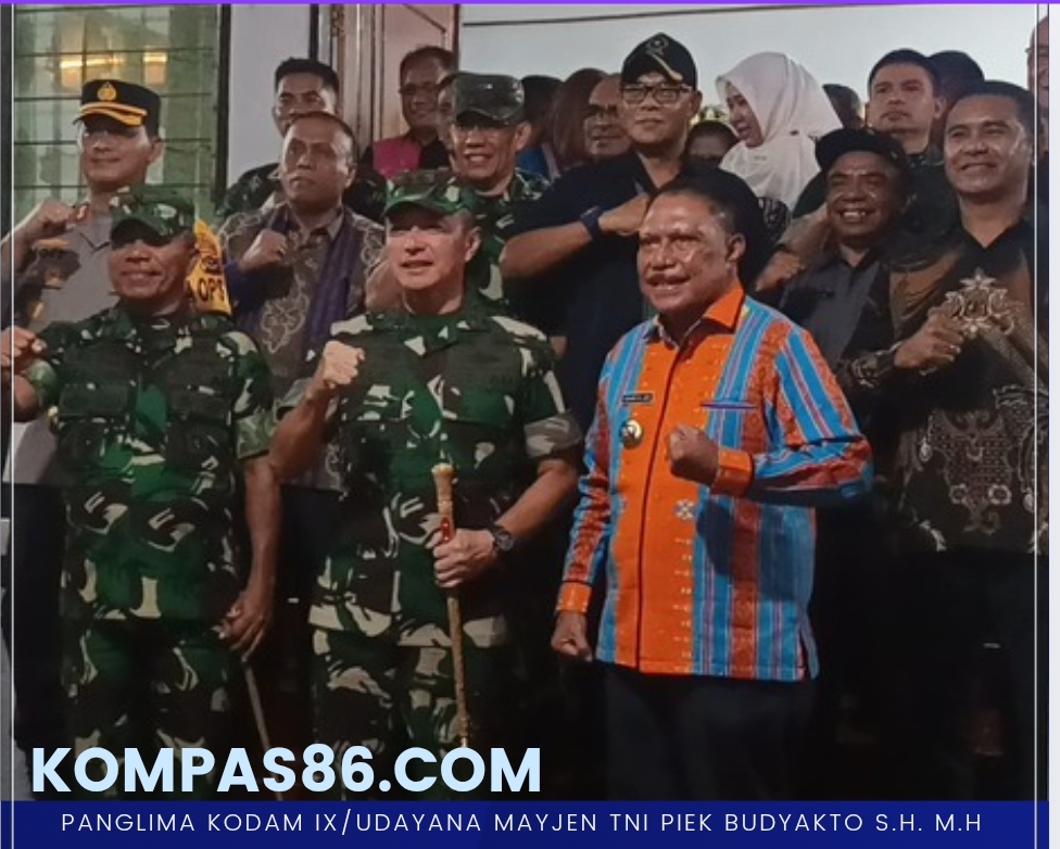 Kompas86.com – Panglima Kodam IX/Udayana Mayjen TNI Piek Budyakto S.H. M.H di dampingi Bapak Danrem 161/WS Joao Xavier Bareto Nunes S.E., M.M. bersama rombongan silaturahmi di Rujab Bupati Timor Tengah Selatan, Provinsi Nusa Tenggara Timur, kegiatan ini merupakan bagian dari serangkaian kegiatan kunjungan kerja di wilayah Korem 161/Wira Sakti khususnya Pulau Timor, (23/04/2025).