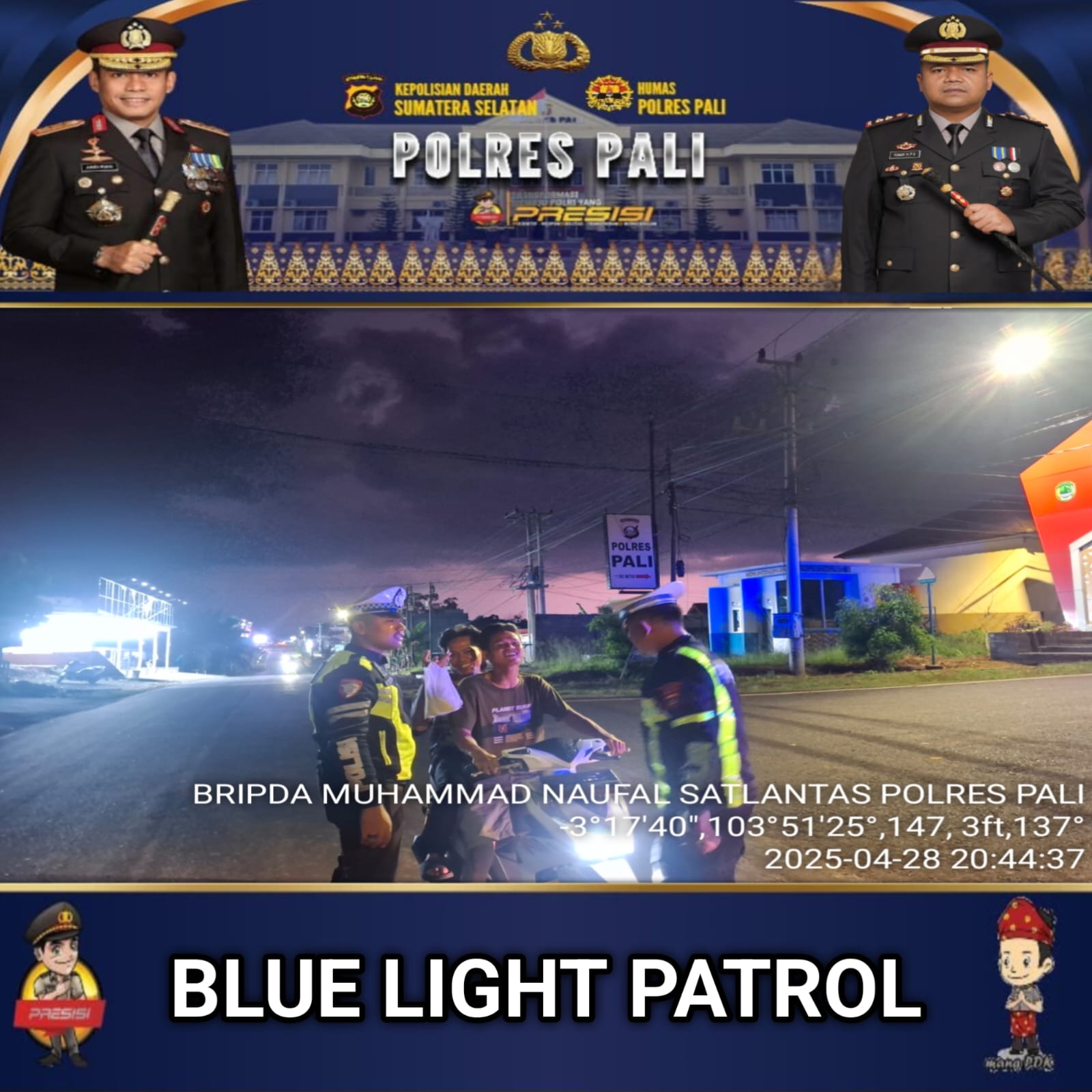 PALI, 28 April 2025 — Untuk menjaga stabilitas keamanan lalu lintas dan mengantisipasi tindak kejahatan jalanan, Satlantas Polres PALI kembali menggelar kegiatan Blue Light Patrol pada Senin malam (28/4). Kegiatan ini berlangsung sejak pukul 20.00 WIB hingga selesai, dengan rute melintasi kawasan strategis di Kecamatan Talang Ubi, Kabupaten PALI.