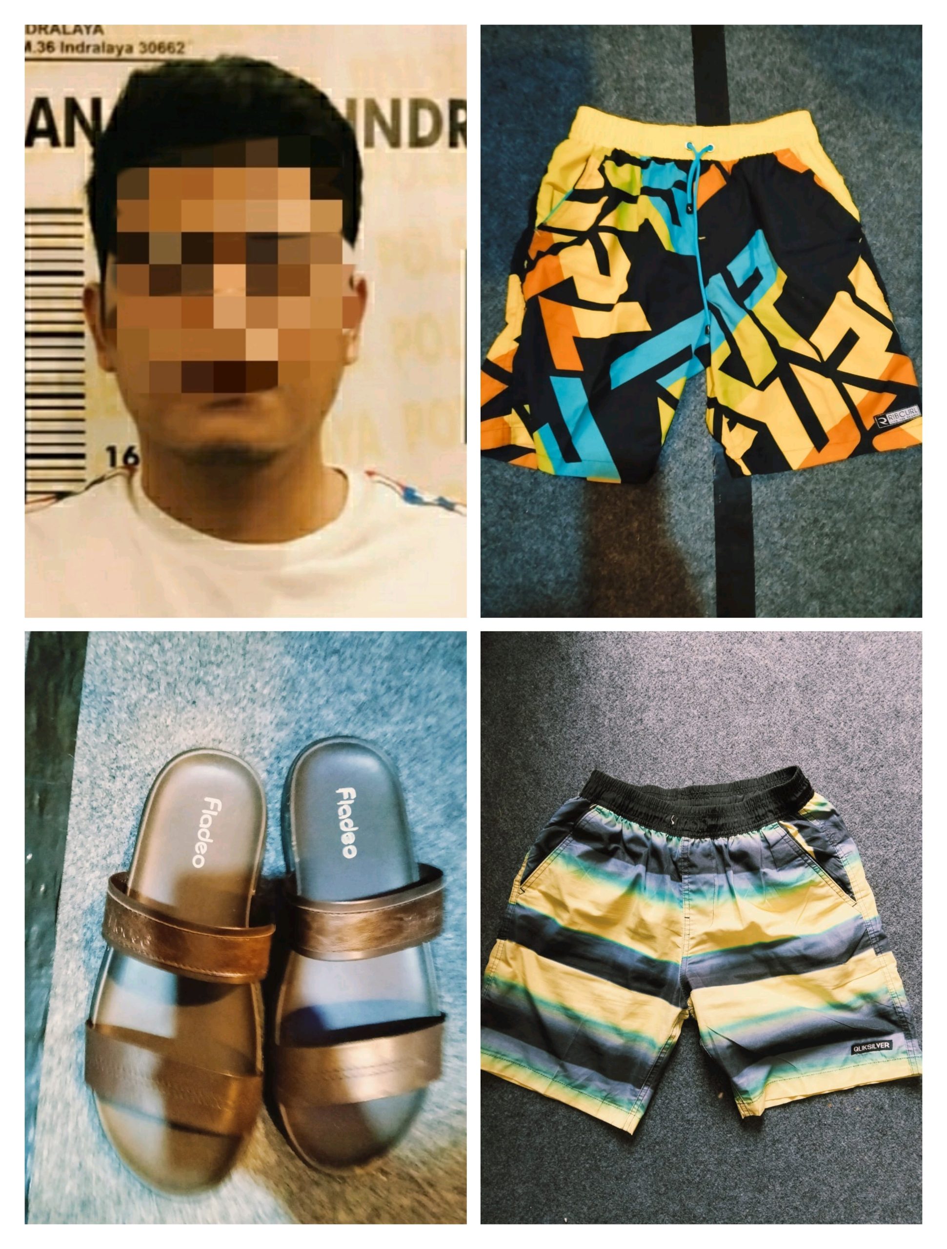 Barang bukti yang berhasil disita antara lain,2 (dua) buah celana pendek,1 (satu) pasang sandal merk Fladeo warna coklat