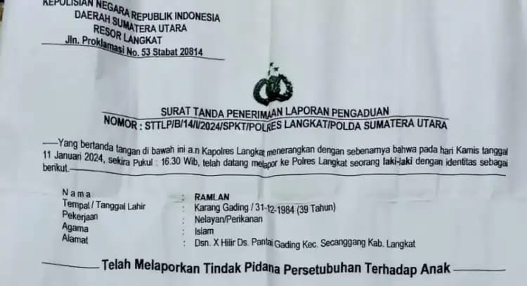 kejadian ini sebelumnya Ayah Korban telah melaporkan peristiwa pencabulan tersebut ke Mapolres Langkat pada tanggal 11 januari 2024 lalu, dari penuturan keluarga korban telah diadakan Visum oleh salah satu Rumah Sakit Swasta di Langkat. Namun sampai hari ini pihak Polres Langkat belum juga mengamankan dan menangkap atau memproses pelaku. Tuturnya.