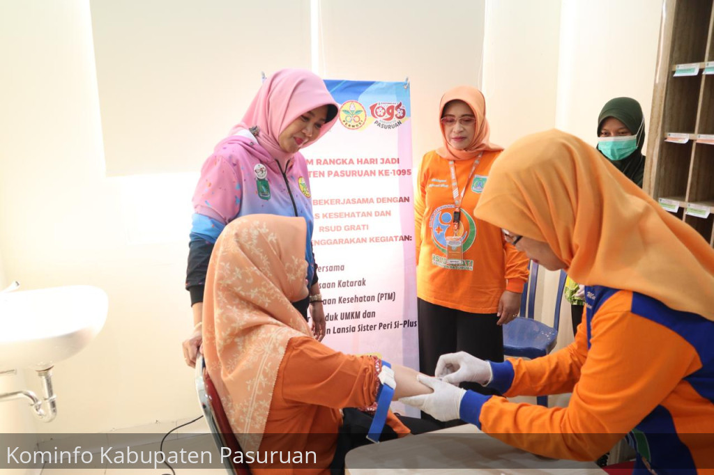 Pemeriksaan tersebut digelar di RSUD Grati dan dihadiri Ketua Perwosi Kabupaten Pasuruan, Ny Luhur Ngudi Setyaningrum Andriyanto, dengan peserta pemeriksaan kesehatan adalah para ibu yang terdiri dari Pengurus Perwosi mulai dari Kabupaten hingga Kecamatan, pengurus dan anggota TP PKK dan Dharma Wanita Persatuan (DWP), anggota Paguyuban Sister Peri Si Plus RSUD Grati hingga warga sekitar.