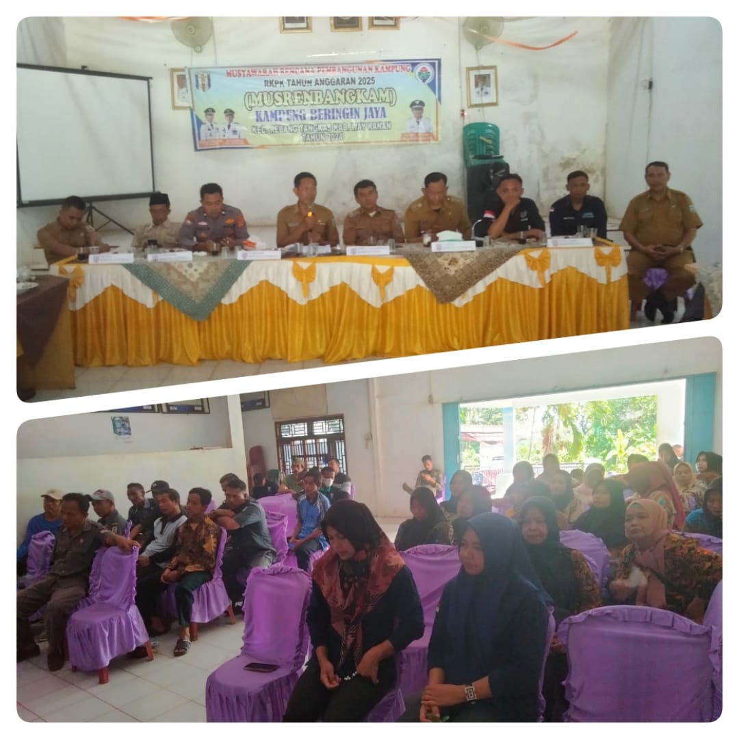 Pemerintah Kampung Beringin Jaya Kecamatan Rebang Tangkas Kabupaten Waykanan Provinsi Lampung adakan Musrembangkam untuk pembangunan 2025 penetapan RPJM di hadiri langsung oleh Kepala Kampung Idil Fitri,Camat Rebang Tangkas, Sekcam,Kasi Pelayanan,Kepala Puskes, Bhabinkamtibmas,juga seluruh perangkat Kampung dan juga masyarakat perwakilan seluruh dusun masing-masing untuk mengusulkan apa yang akan di usulkan demi berkembangnya pemerataan di kampung mereka dalam bentuk pembangunan masing-masing setiap dusun.Selasa,(15/10/2024)