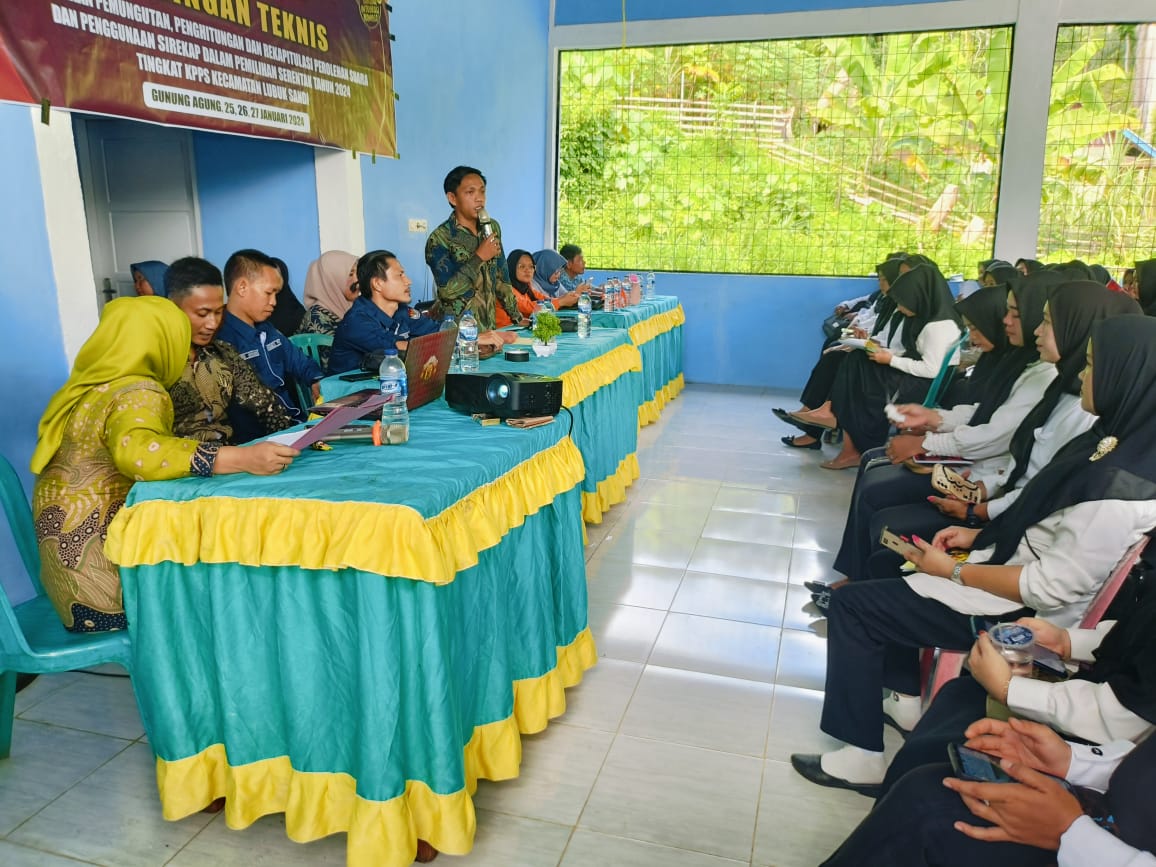Seluma-mendekati pemilu 2024 komisi pemilihan umum (KPU) seluma melalui PPK kecamatan lubuk sandi mengadakan bimbingan teknis kepada KPPS di gedung desa gunung agung jumat 26/1/2024.