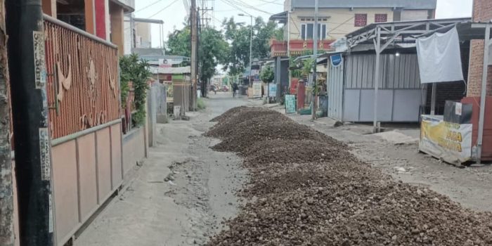 “Kebanyakan drainase air ada di dalam pagar warga, rumah warga juga lebih tinggi dari jalan ini sehingga air hujan kurang lancar mengalir. (Ujang)