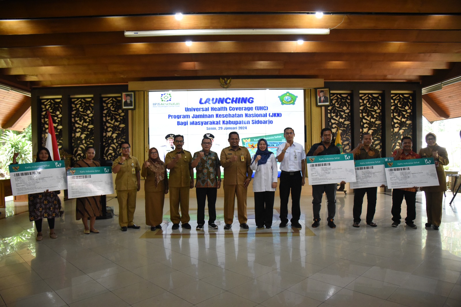 Pagi tadi, Universal Health Coverage (UHC) Program Jaminan Kesehatan Nasional (JKN) bagi masyarakat Sidoarjo di lanching di Pendopo Delta Wibawa, Senin, (29/1). Asdep Bidang Kepersertaan dan Mutu Pelayanan Kedeputian Wilayah VII BPJS Kesehatan Jatim Aryo Pambudi didampingi Kepala Kantor BPJS Kesehatan Cabang Sidoarjo Yessy Novita serta Ketua DPRD Sidoarjo H. Usman hadir dalam kesempatan itu.