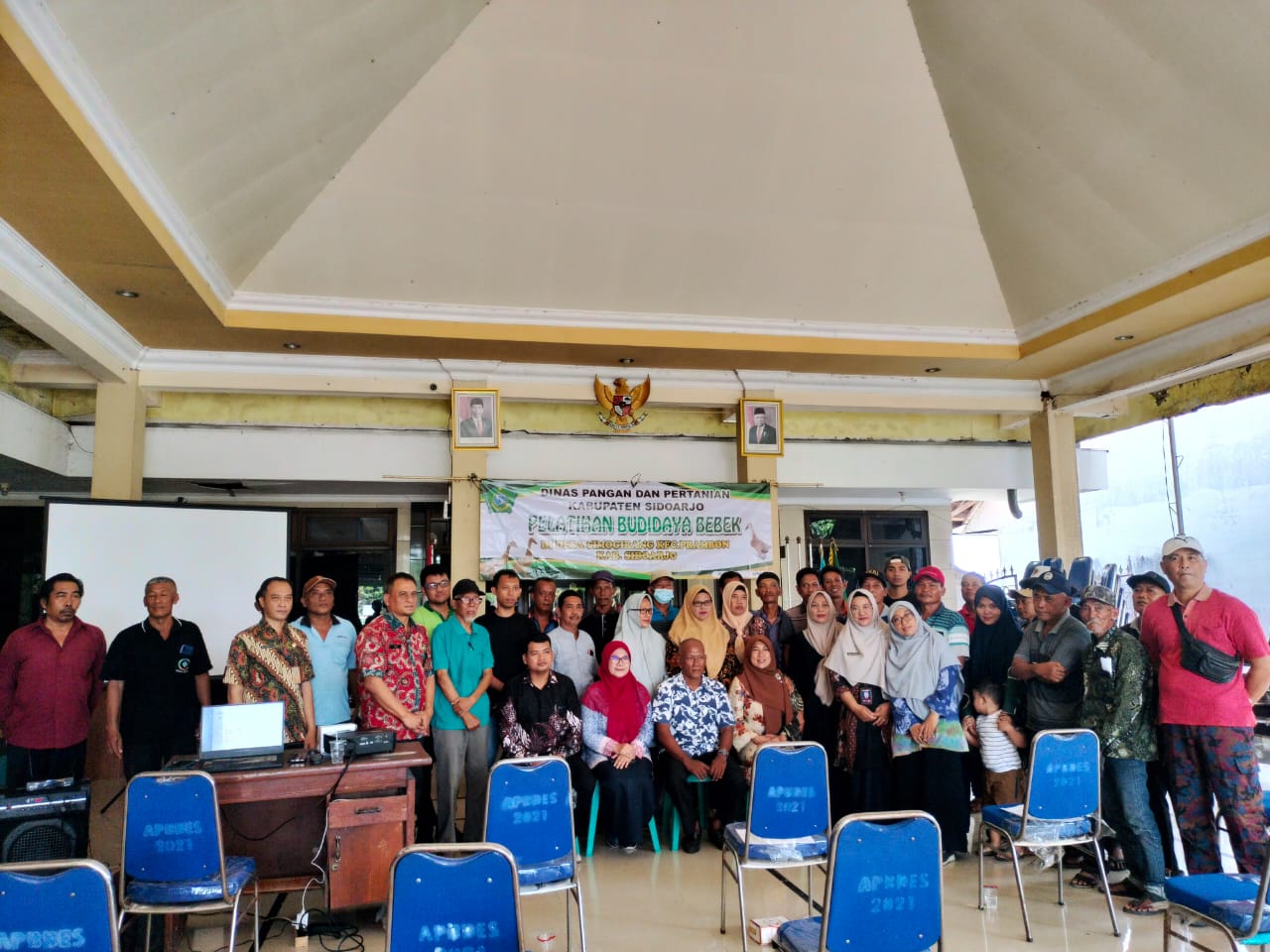Kompas86.com |Sidoarjo |Jatim | Gabungan Kelompok Tani/Gapoktan mendapatkan pelatihan budidaya bebek pedaging jenis peking oleh Dinas Pangan dan Pertanian Kabupaten Sidoarjo, Selasa (23/04/2024). Selain itu 30 orang anggota Gapoktan Sekar Jaya Desa Simogirang Kecamatan Prambon itu juga mendapatkan 100 bibit bebek peking gratis sekaligus pakannya. Pelatihan budidaya bebek pedaging jenis peking tersebut dilakukan di balai Desa Simogirang.