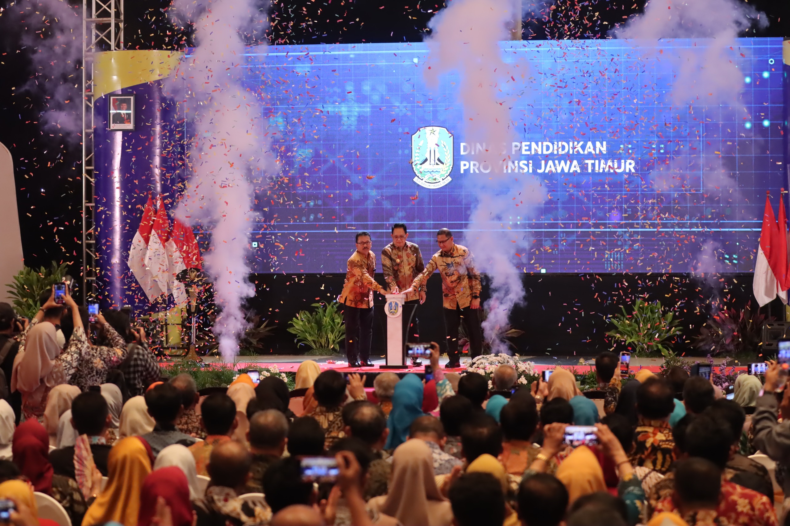 Surabaya |Jatim | Pemerintah Provinsi Jawa Timur menggelar perayaan memperingati Hari Aksara Internasional ke-59 dan Hari Guru Nasional ke-79 di Gedung Islamic Center Surabaya, Selasa(19/11/2024).