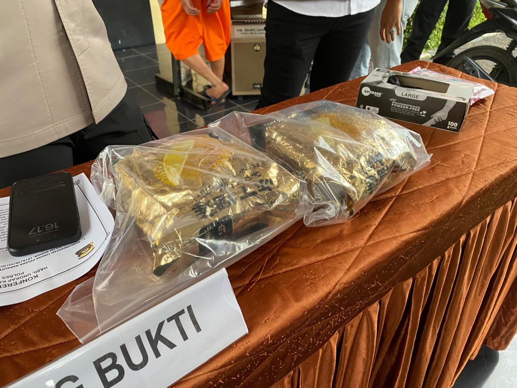 Dalam penggeledahan di lokasi, polisi menemukan dua bungkus plastik bergambar durian berisi sabu seberat bruto 2.081 gram, satu plastik merek Milo, satu unit sepeda motor tanpa nomor polisi, satu unit handphone, dan sejumlah barang bukti lainnya.