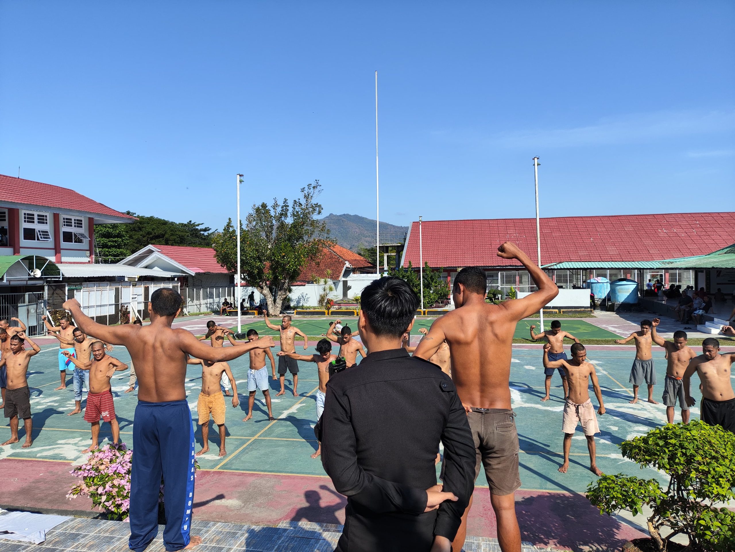 Kompas86.com.Dompu.NTB.Sebanyak 28 Orang Tahanan baru di Lembaga Pemasyarakatan Kelas IIB Dompu Kanwil Kemenkumham NTB olahraga pagi. Ini merupakan kegiatan rutin yang mereka lakukan selama menjalani proses masa pengenalan lingkungan atau mapenaling.