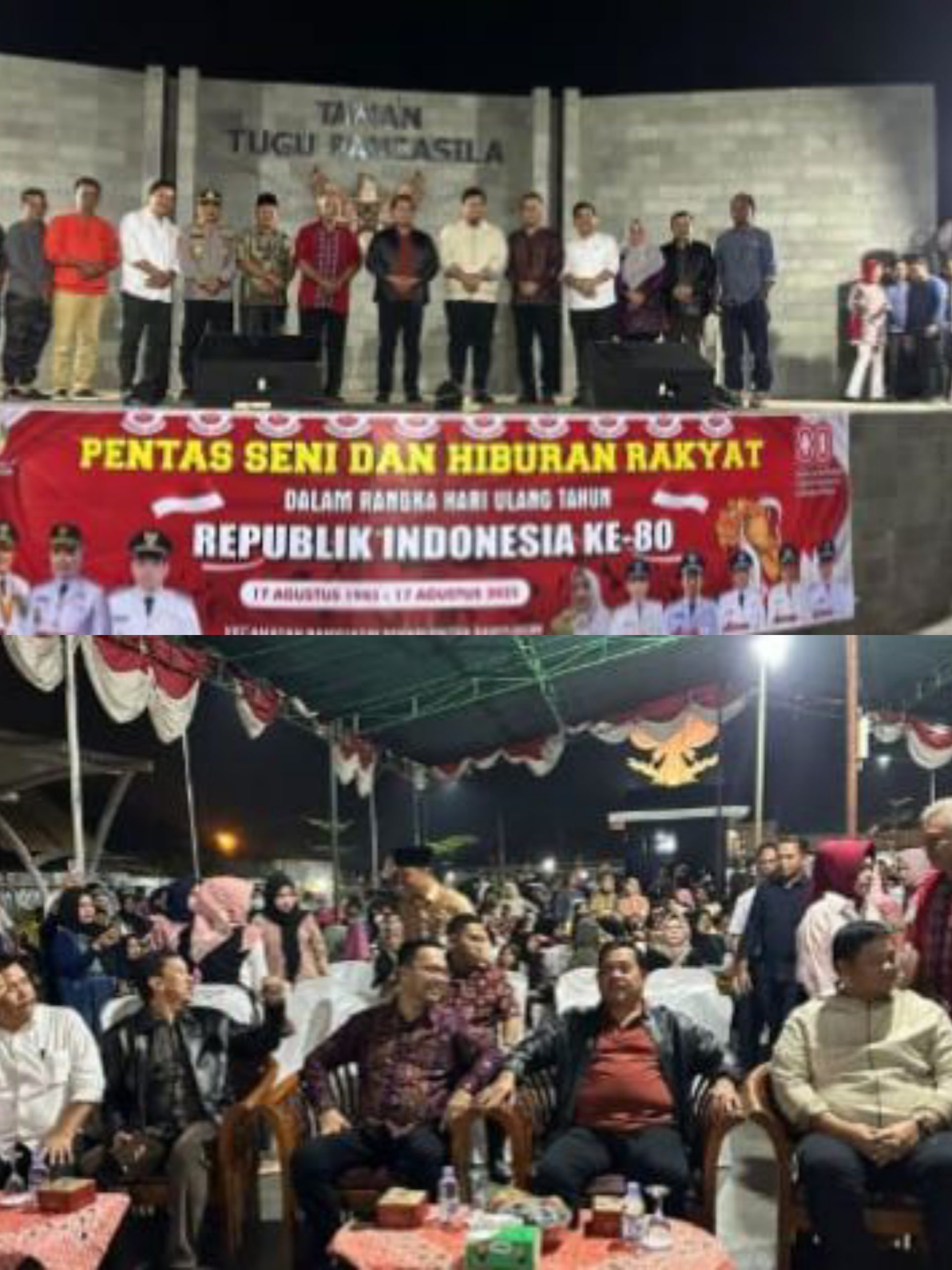 *Banyuasin* – Tugu Pancasila di Jalan Thalib Wali, Kelurahan Pangkalan Balai, Kecamatan Banyuasin III, Kabupaten Banyuasin, menjadi pusat kemeriahan dalam pembukaan Pentas Seni dan Hiburan Rakyat dalam rangka memperingati Hari Ulang Tahun (HUT) Republik Indonesia ke-80. Kegiatan yang digelar pada Senin malam (11/8/2025) ini dihadiri oleh sejumlah pejabat daerah serta masyarakat setempat.