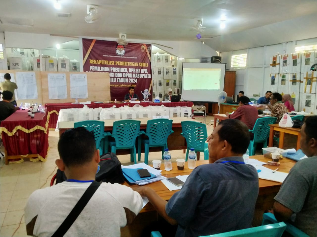 KENDAWANGAN (KALBAR) KOMPAS86.COM__, Panitia Pemilihan Kecamatan (PPK) Kendawangan Kabupaten Ketapang Provinsi Kalimantan Barat akhirnya memberlakukan pleno rekapitulasi penghitungan suara untuk Pilpres dan Pileg tahun 2024 tingkat Kecamatan Kendawangan menjadi dua panel atau dua tempat namun masih dalam satu gedung yaitu gedung Pusat Kegiatan Guru (PKG) Kecamatan Kendawangan,hal ini dilakukan demi efesiensi waktu rekapitulasi perolehan suara mengingat Kecamatan Kendawangan ada 19 Desa dan terdiri dari 165 Tempat Pemungutan Suara (TPS) sehingga dikhawatirkan akan memakan waktu yang cukup lama.