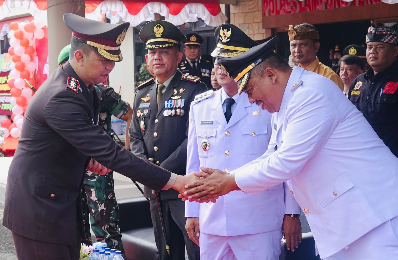 Kapolres Lampung Tengah, AKBP, Alsyahendra, S.I.K., M.H., bertindak sebagai inspektur upacara dan dalam amanatnya membacakan sambutan Kapolda Lampung, Irjen Pol Helmy Santika, S.H., S.I.K., M.Si.