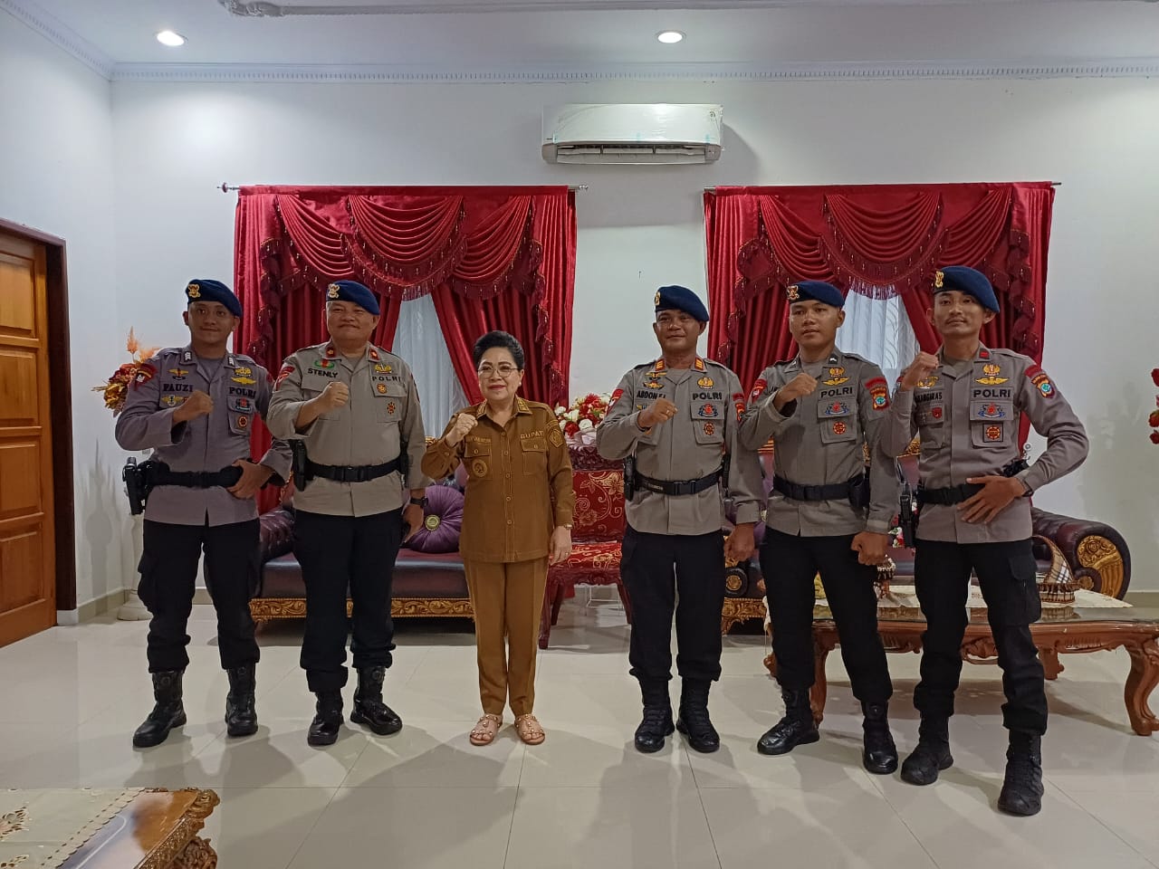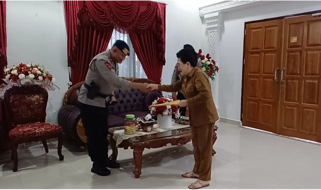 Permohonan permintaan lahan pembangunan Mako Brimob di Kabupaten Kepulauan Sangihe, WaDanden Gegana Satbrimob polda Sulut Kompol Stenly.J. Lungkang,S E bersama WaDanyon A Pelopor Satbrimob Polda Sulut AKP Abdon F Londohiang dan tim sambangi Pj Bupati Sangihe.